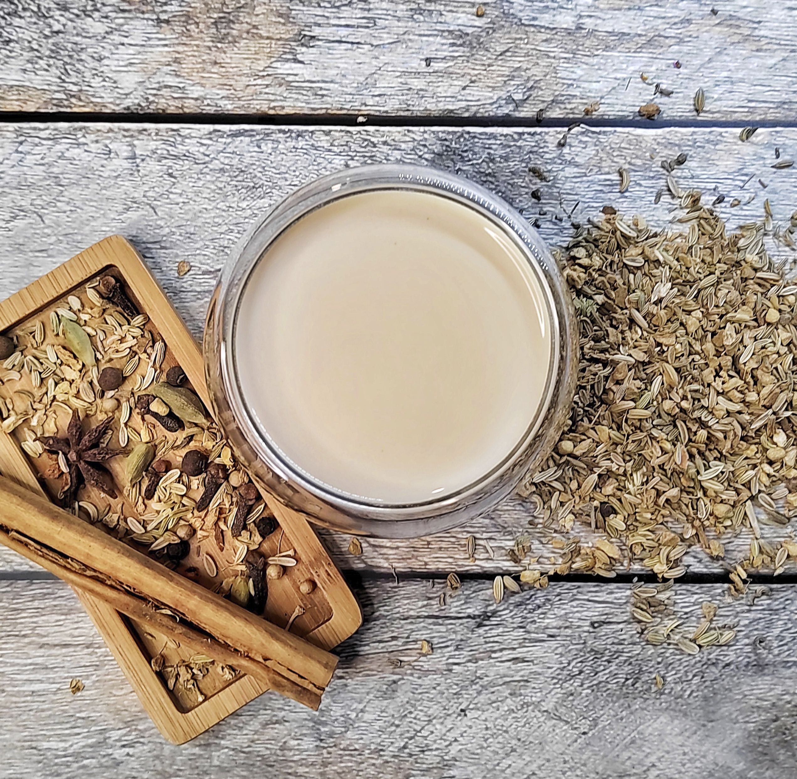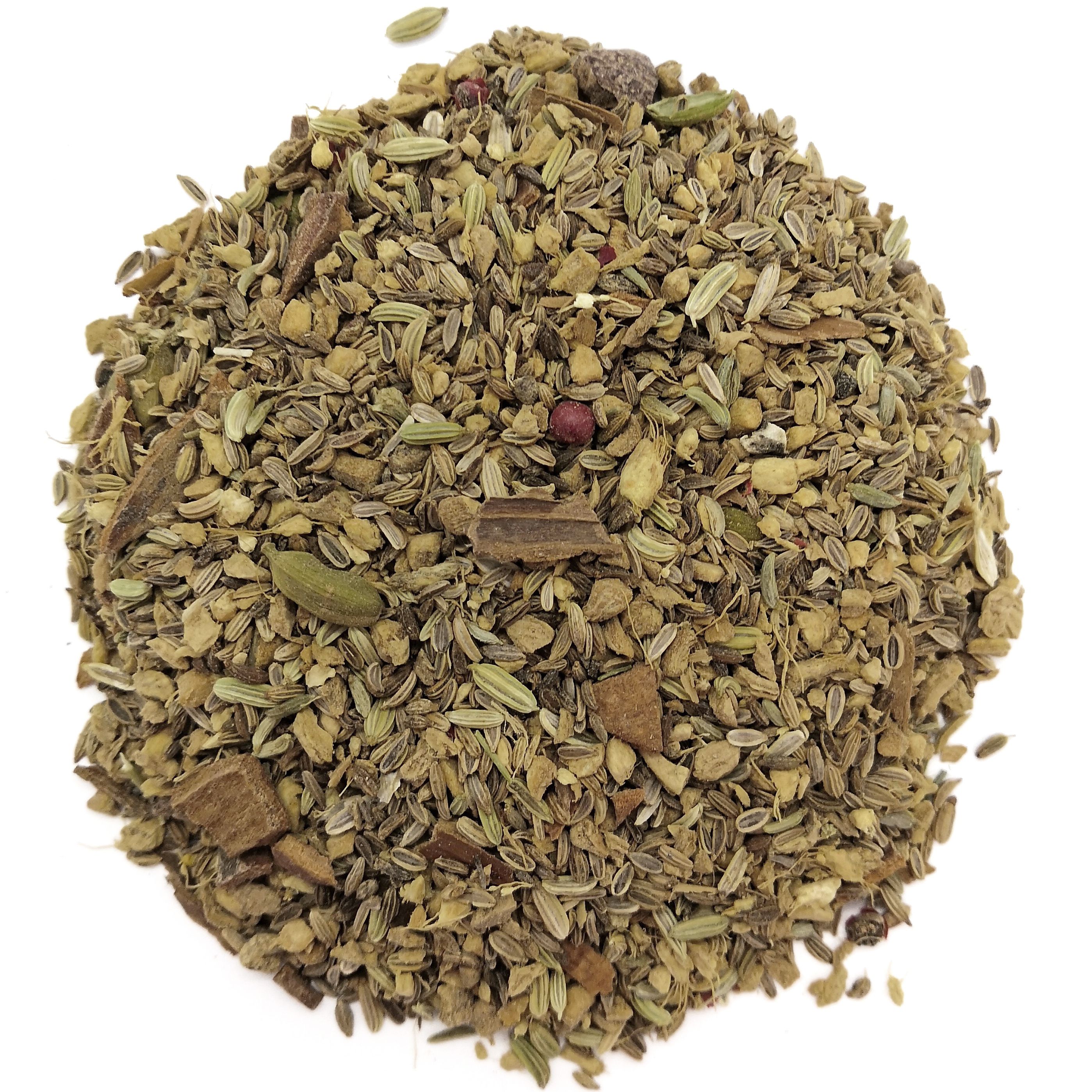 Можно встретить множество разновидностей состава гарам масал, мы же собрали основной букет пряностей: гвоздика, смесь перцев, кардамон, зира (кумин), мускатный орех, тмин, кориандр, анис, корица, фенхель и имбирь.