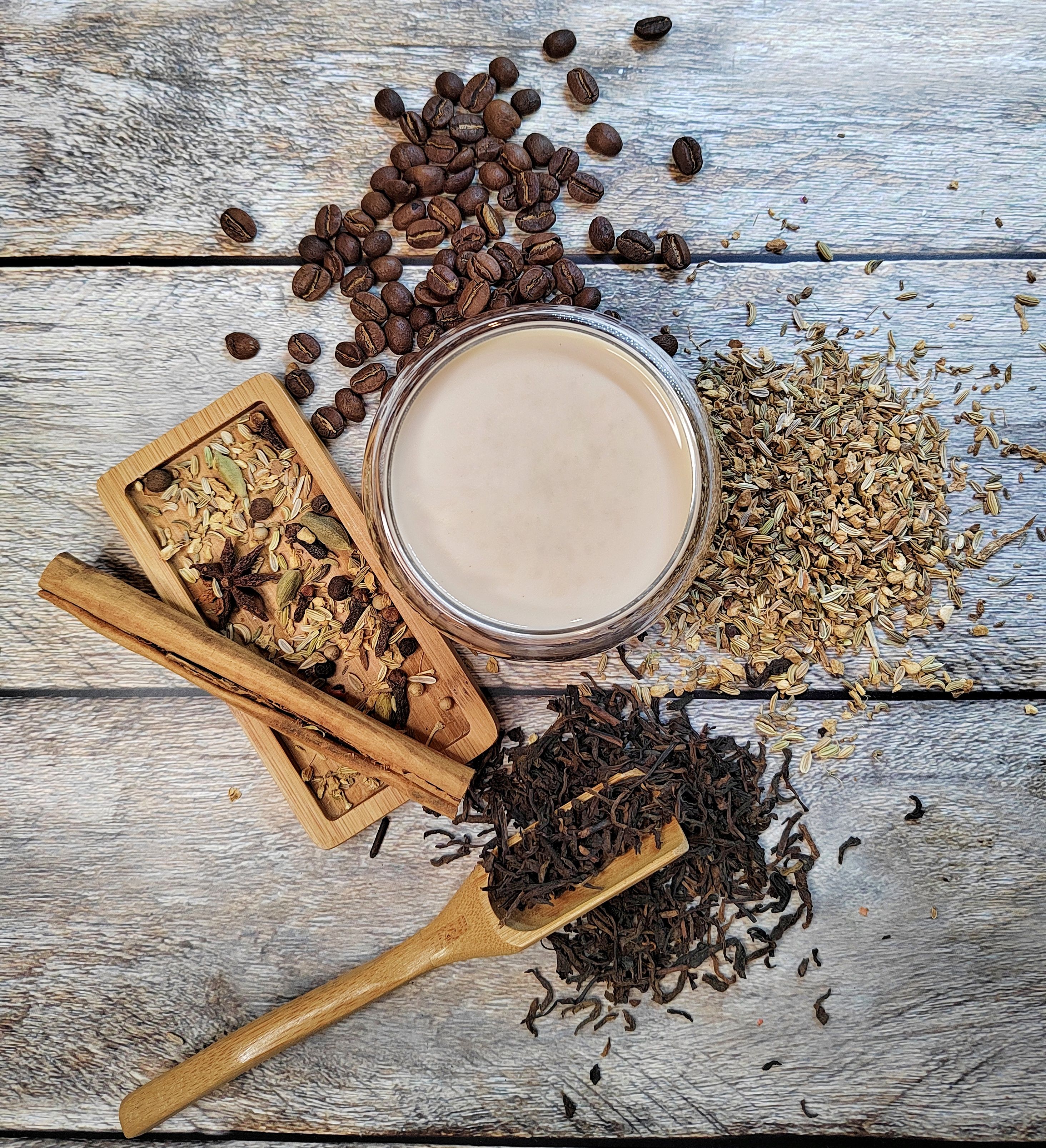 Вам потребуется: 200 мл воды, 200 молока(можно коровье, кокосовое или любое другое), черный чай 1-2 чайных ложки, специя масала 1 чайная ложка(можно варьировать количество по вкусу).