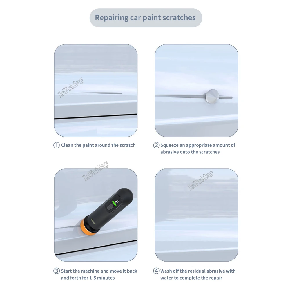 Использует высокоскоростной полностью Медный двигатель с частотой 12000 об/мин, использует абразив с полировальным диском для полировки краски на царапинах и восстановления блеска.