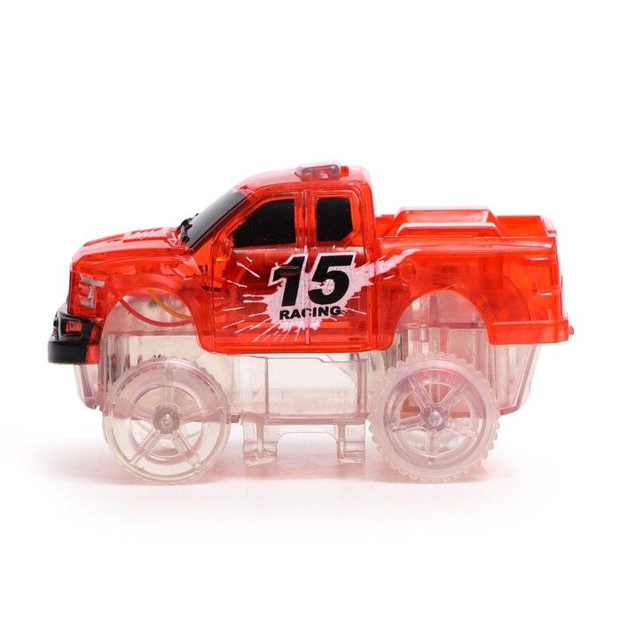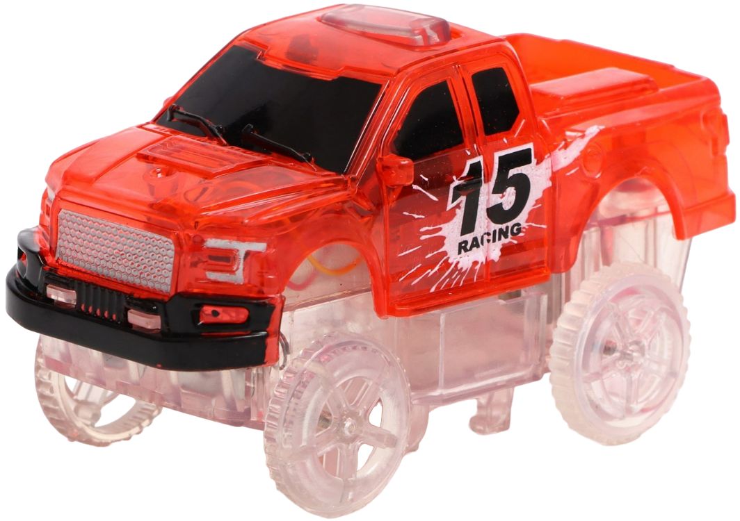 Машинка для гибкого игрового автотрека "Flash Track" светящаяся, с зацепами для петли, работает от батареек, цвет красный