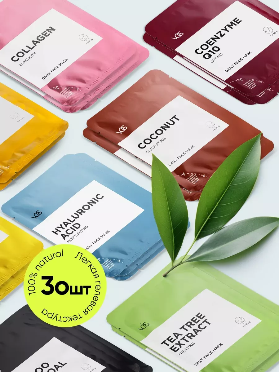 Количество предметов в упаковке набор масок для лица; 30 шт.