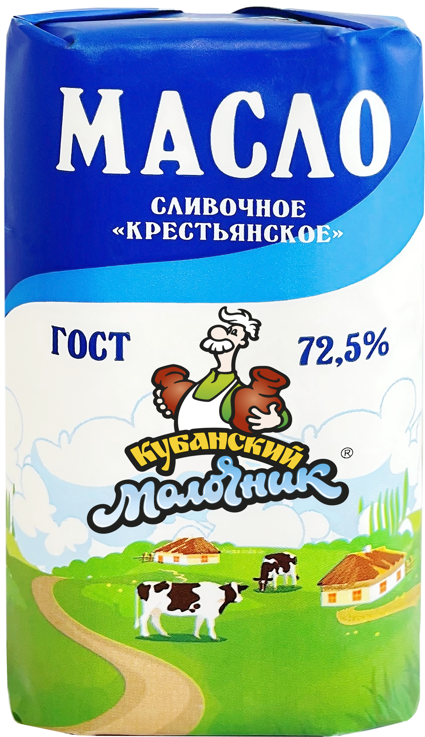 Описание: Масло сливочное «Крестьянское» полезный и питательный молочный продукт. Содержит полиненасыщенные жирные кислоты, фосфолипиды и витамины А, Д, Е. Масло «Кубанский молочник» изготавливается по традиционной технологии исключительно из свежих высококачественных сливок, получаемых из натурального коровьего молока.