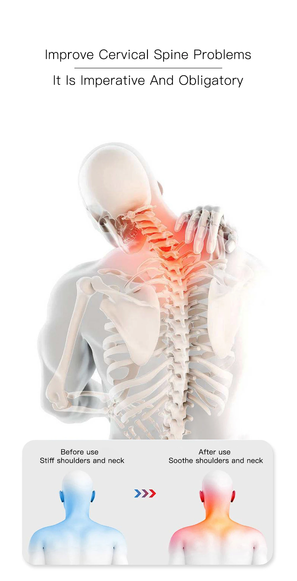 2. Наша Массажная подушка для шейного отдела позвоночника может обеспечить сильную поддержку головы, эффективно расслабить шейный отдел позвоночника, снять дискомфорт в плечах и шее и улучшить качество сна.