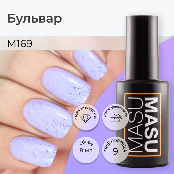Описание: Текст при отключенной в браузере загрузке изображенийГель-лак MASU MASU Бульвар, 8 млсиреневый молочный с черным и белым глиттером
