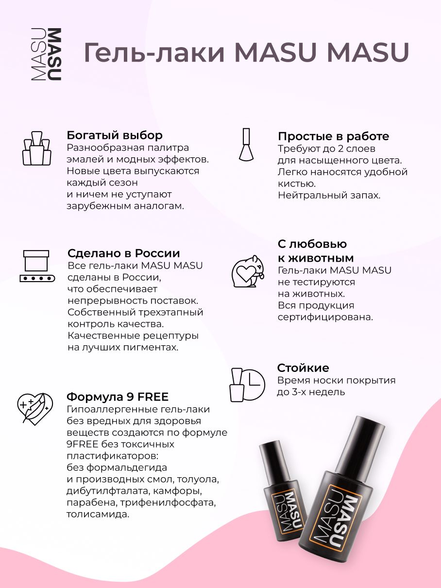 Выбранный оттенок может не передавать точного цвета из-за настроек экрана пользователяТекст при отключенной в браузере загрузке изображенийГель-лаки Masura - Большая палитра цветов