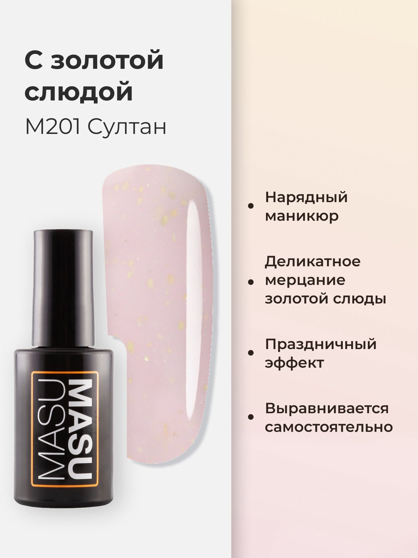 Описание: Текст при отключенной в браузере загрузке изображенийГель-лак MASU MASU Султан, 8 млЦвет: Холодный светлый розовый с мелкой золотой поталью