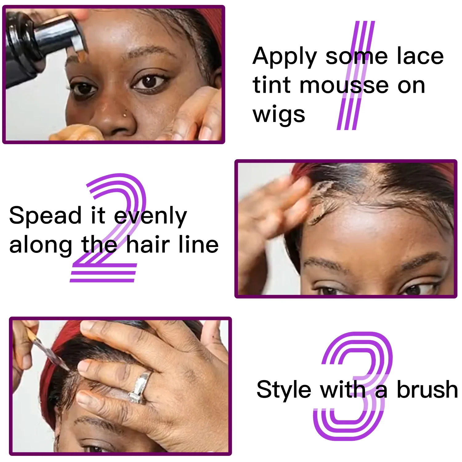 Mateplex парик, мусс с кружевным оттенком, средний коричневый + 38 мл, водонепроницаемое средство для удаления кружевного клея + гребни, наборы кистей для установки кружева, фронтального парика