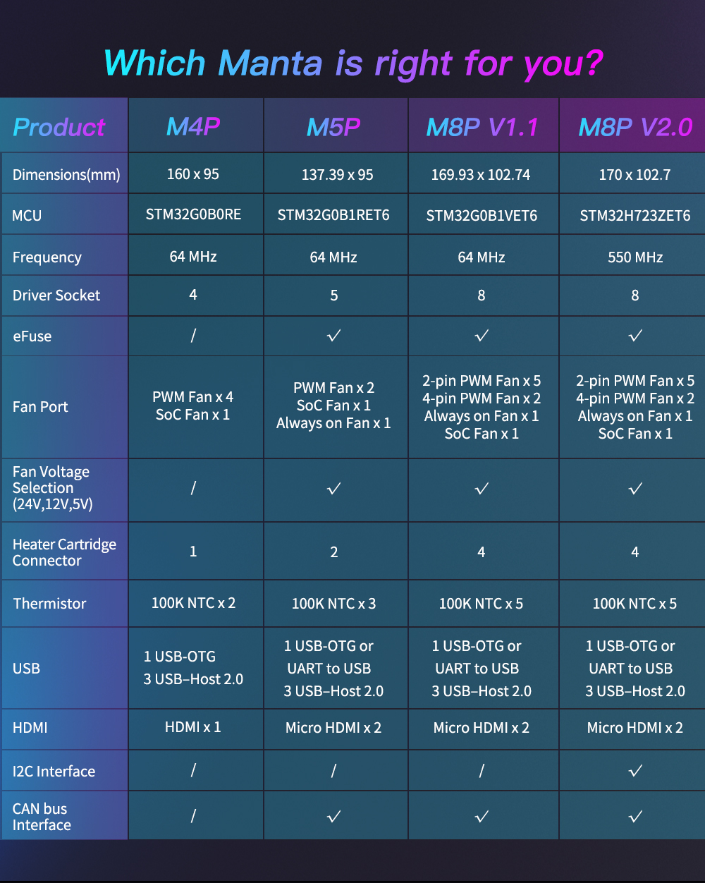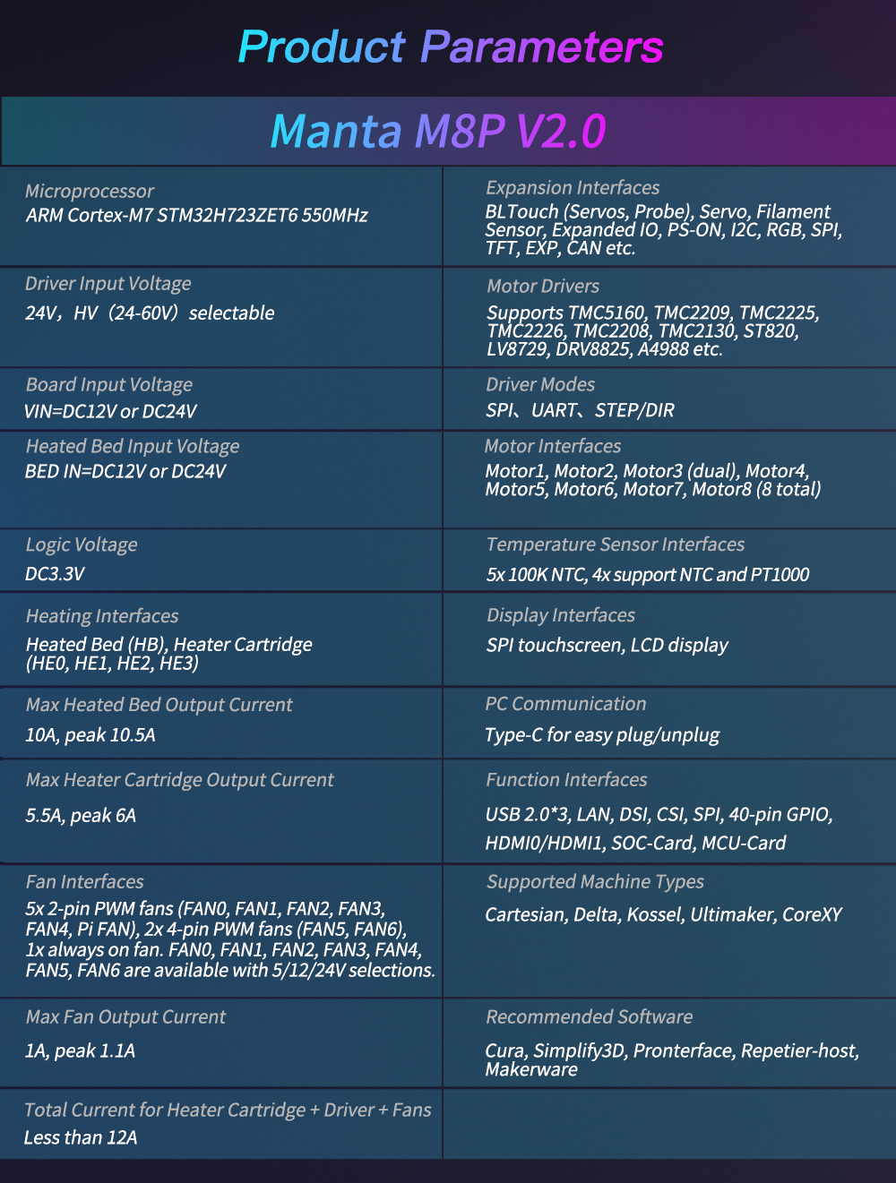 <span class="SnowProductCharacteristics_SnowProductCharacteristicsItem__titleContent__534v9">Motor Driver</span> Support TMC5160, TMC2209, TMC2225, TMC2226, TMC2208, TMC2130, ST820, LV8729, DRV8825, A4988...