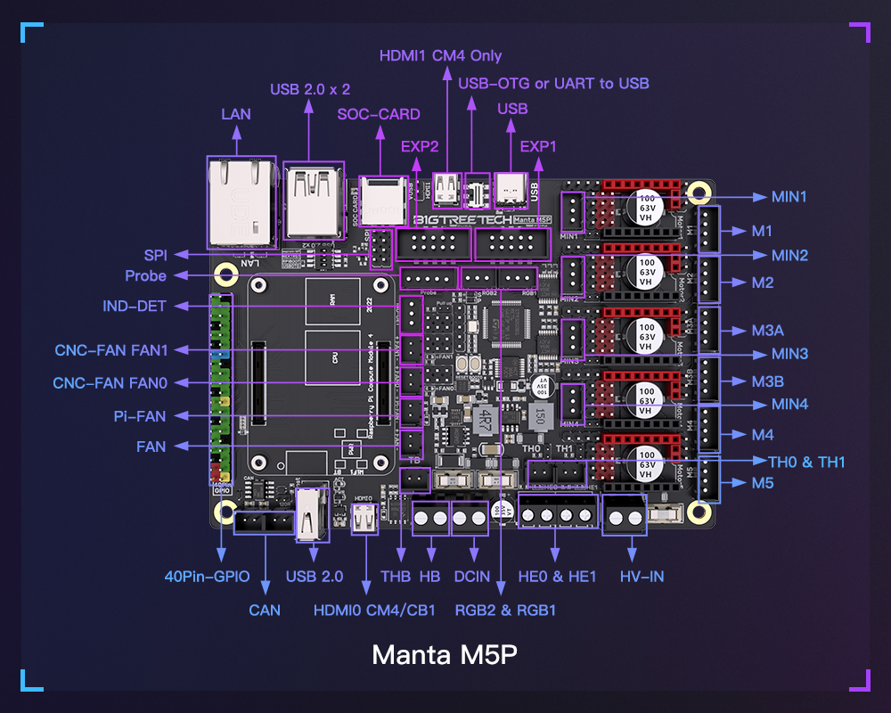 Материнская плата BIGTREETECH Manta M4P M8P M5P 32 бит с CB1 для Klipper Raspberry Pi CM4 Voron V0 Ender 3, плата управления для 3D-принтера