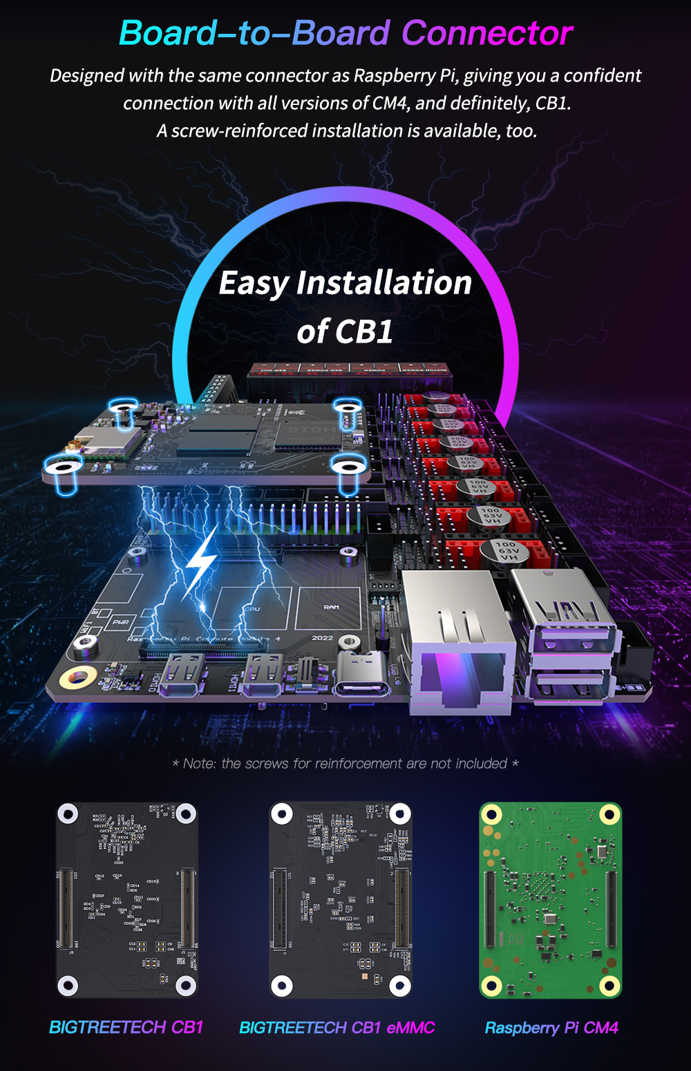 6. Использование соединения плата-плата BTB, которое можно дополнительно усилить винтами, идеально Совместимо с CB1 или Raspberry Pi CM4.
