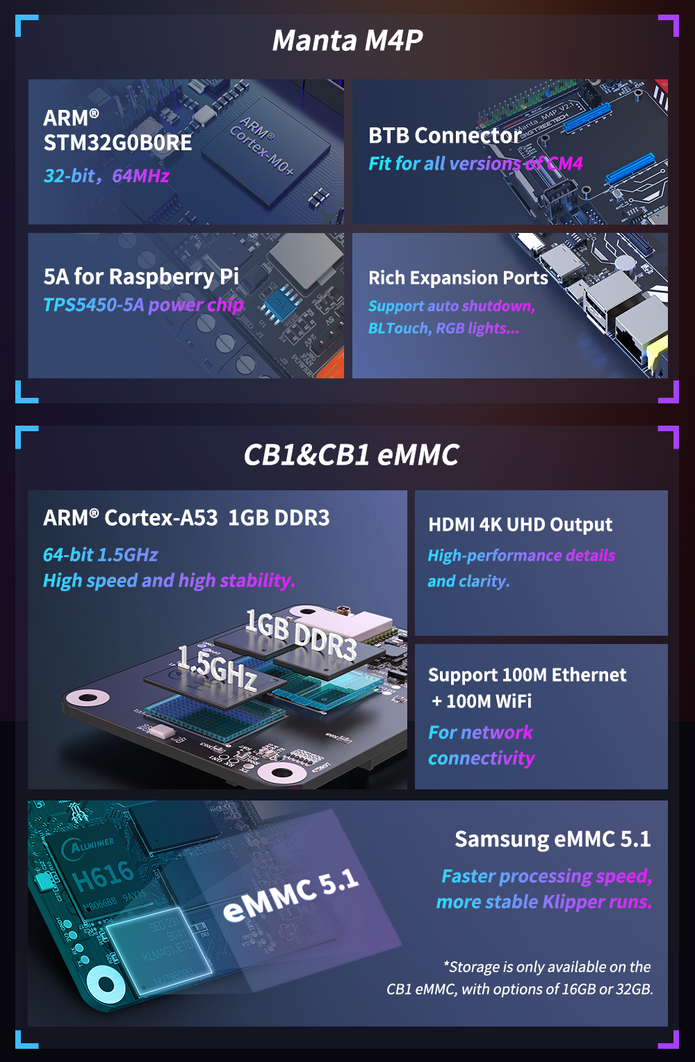 BIGTREETECH CB1-альтернатива Raspberry Pi CM4. BIGTREETECH M4P-это 4-осевая материнская плата с разъемом CM4 BTB, которая идеально работает с CB1 или CM4.