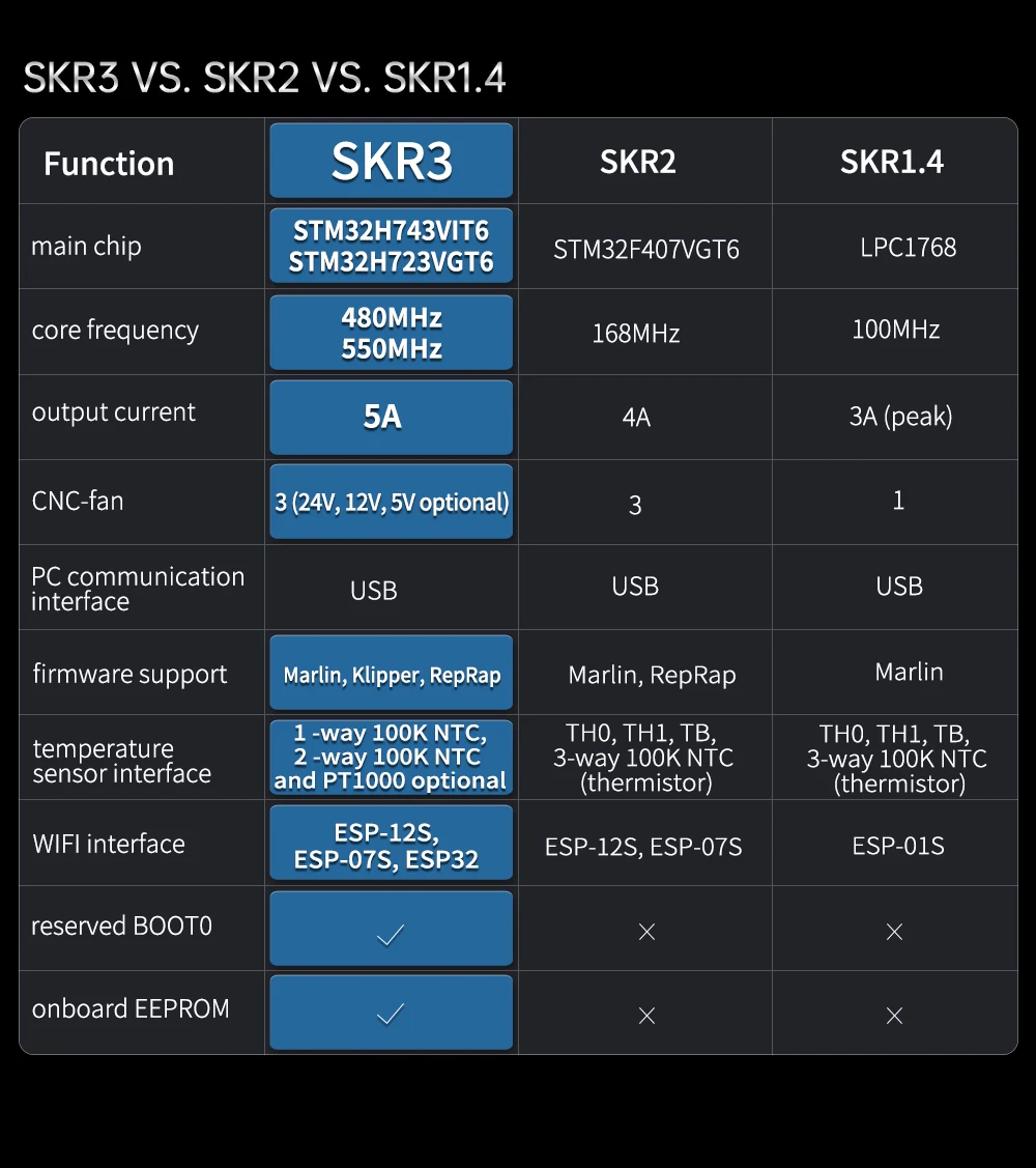 BIGTREETECH SKR 3-это 32-разрядная материнская плата, предназначенная для 3D-принтера, которая была запущена командой 3D-печати Shenzhen Big Tree Technology Co., Ltd. Это обновление SKR V1.4/Turbo.