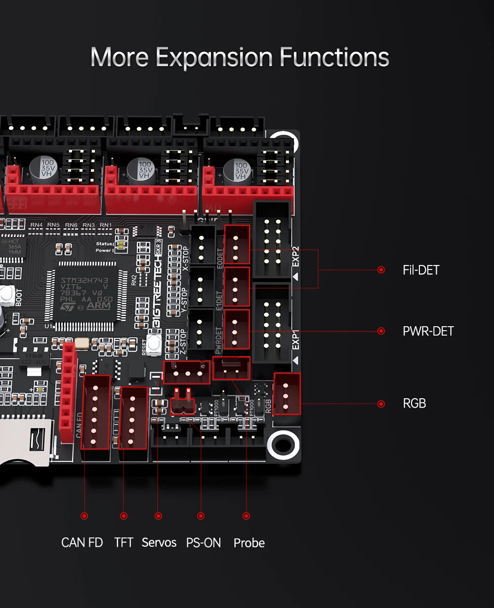 Expansion interfaces Servos, Probe, PS-ON, PWR-DET, Fil-DET, CAN FD