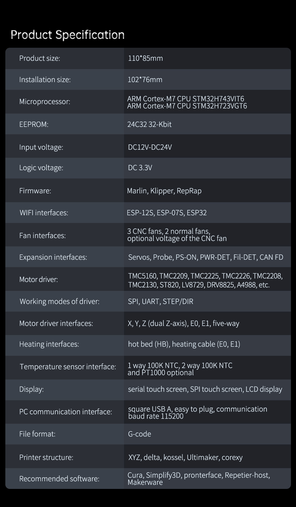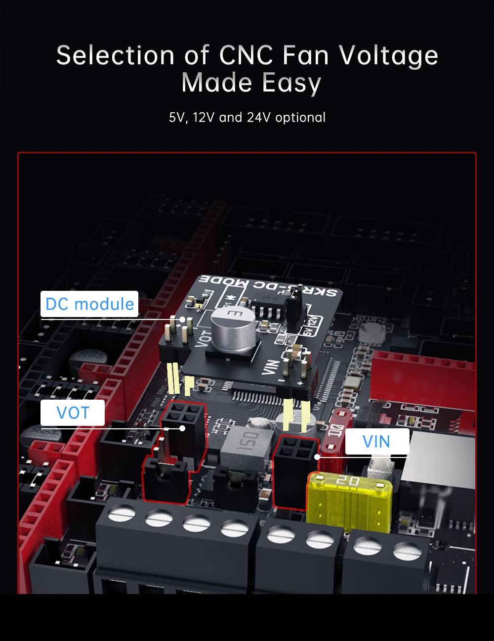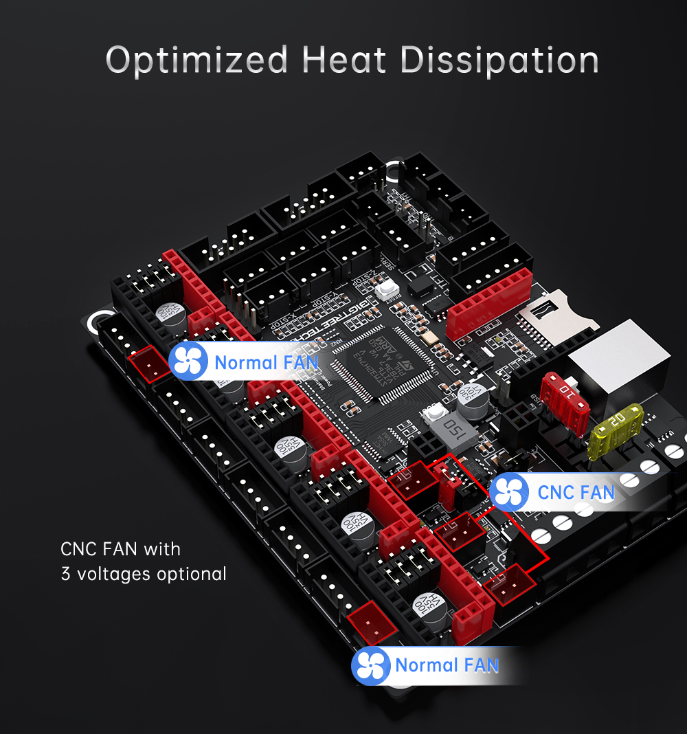 Fan interfaces 3 CNC fans, 2 normal fans, optional voltage of the CNC fan