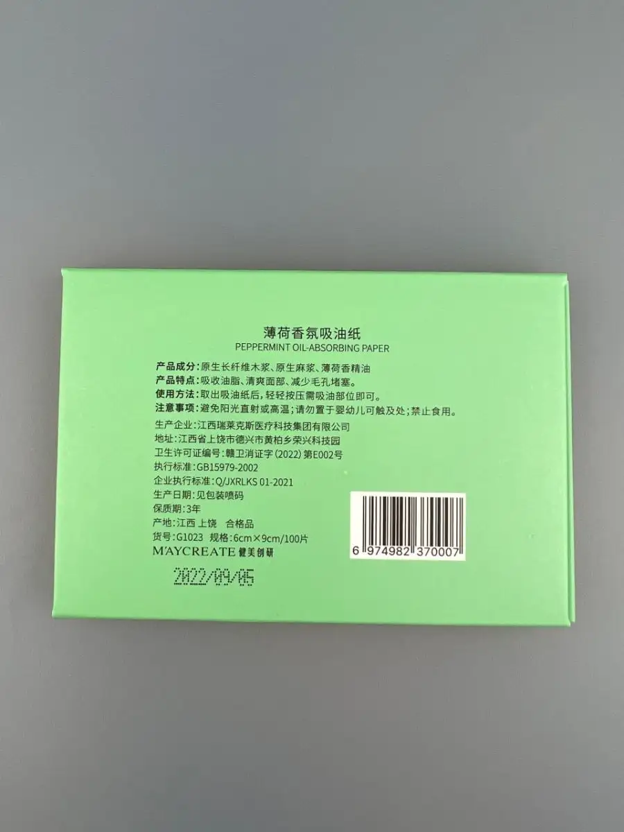 Комплектация матирующие салфетки для лица с мятой - 100 шт упаковки