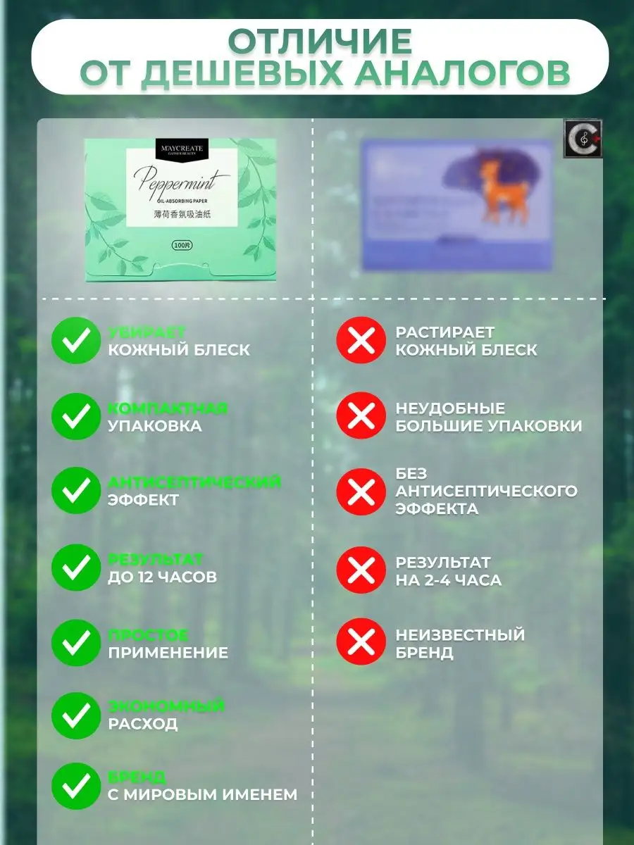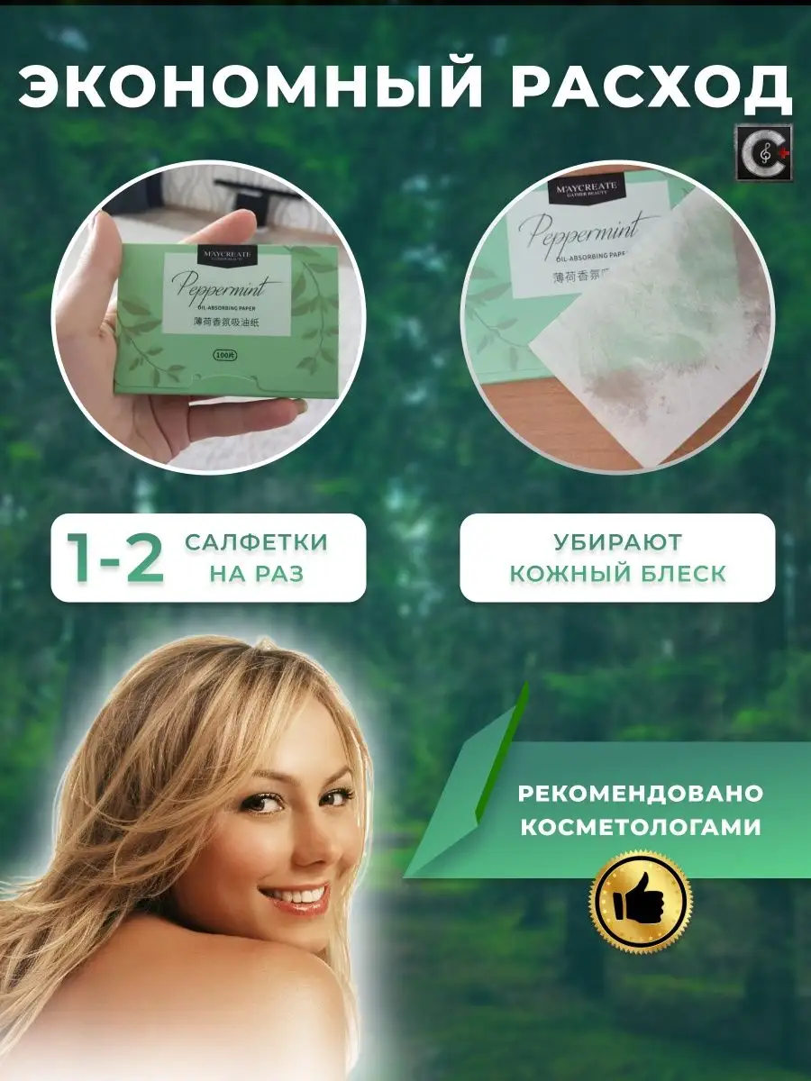 Комплектация матирующие салфетки для лица с мятой - 100 шт упаковки