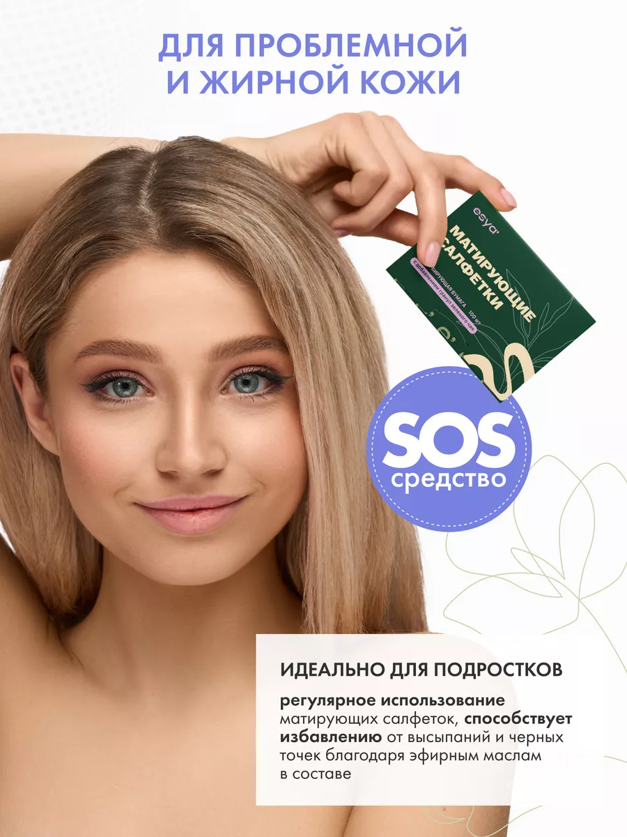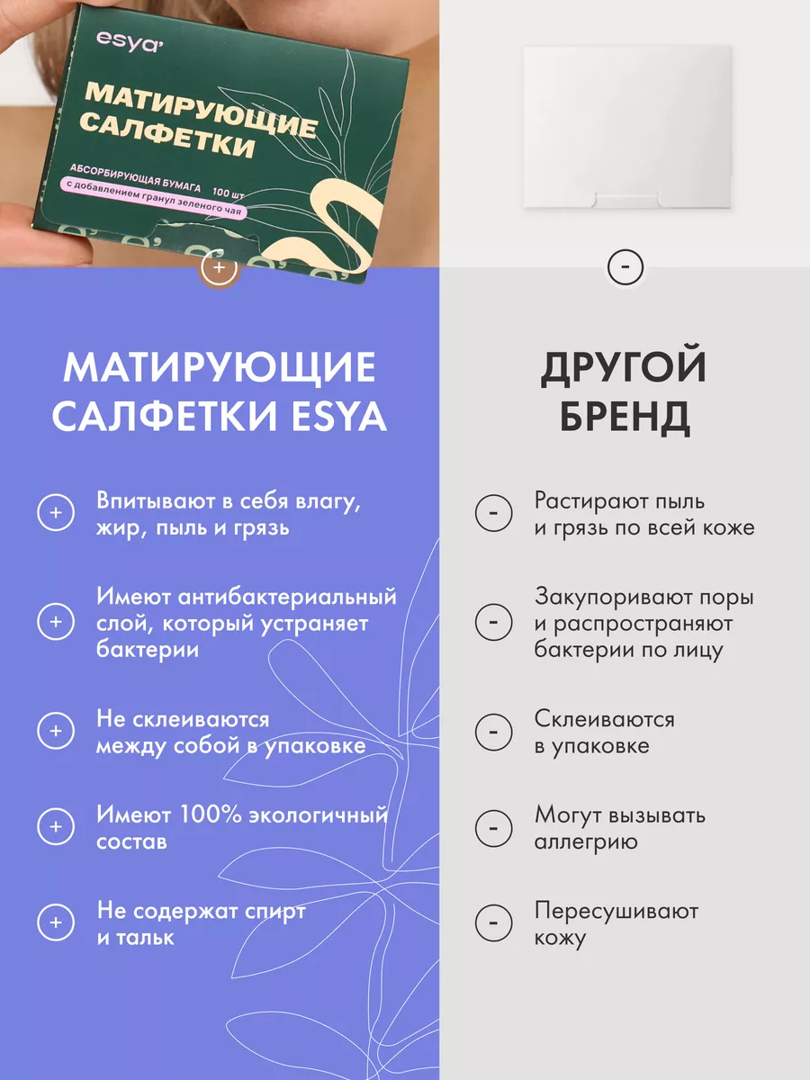 Матирующие салфетки для лица от жирного блеска 100 штук