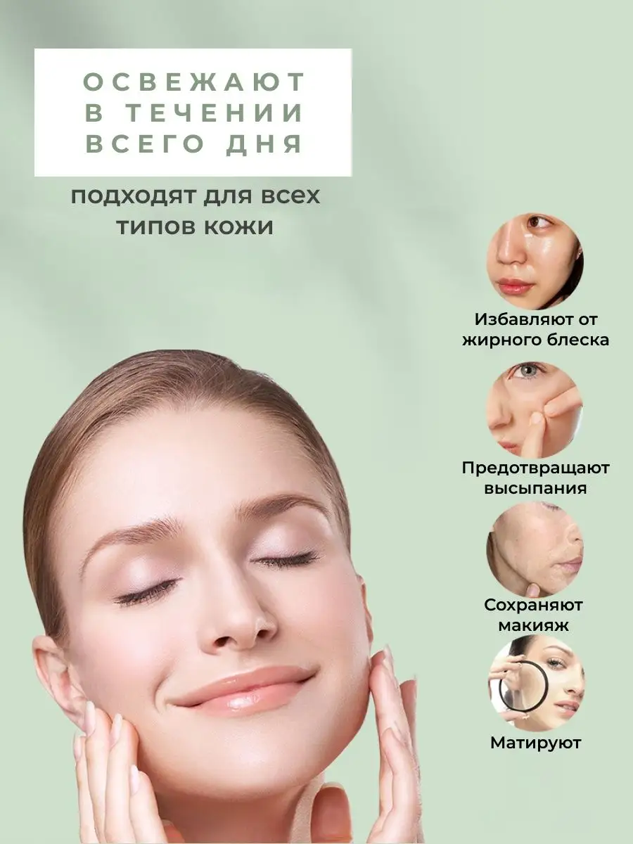 Матирующие салфетки для лица от жирного блеска 100 штук