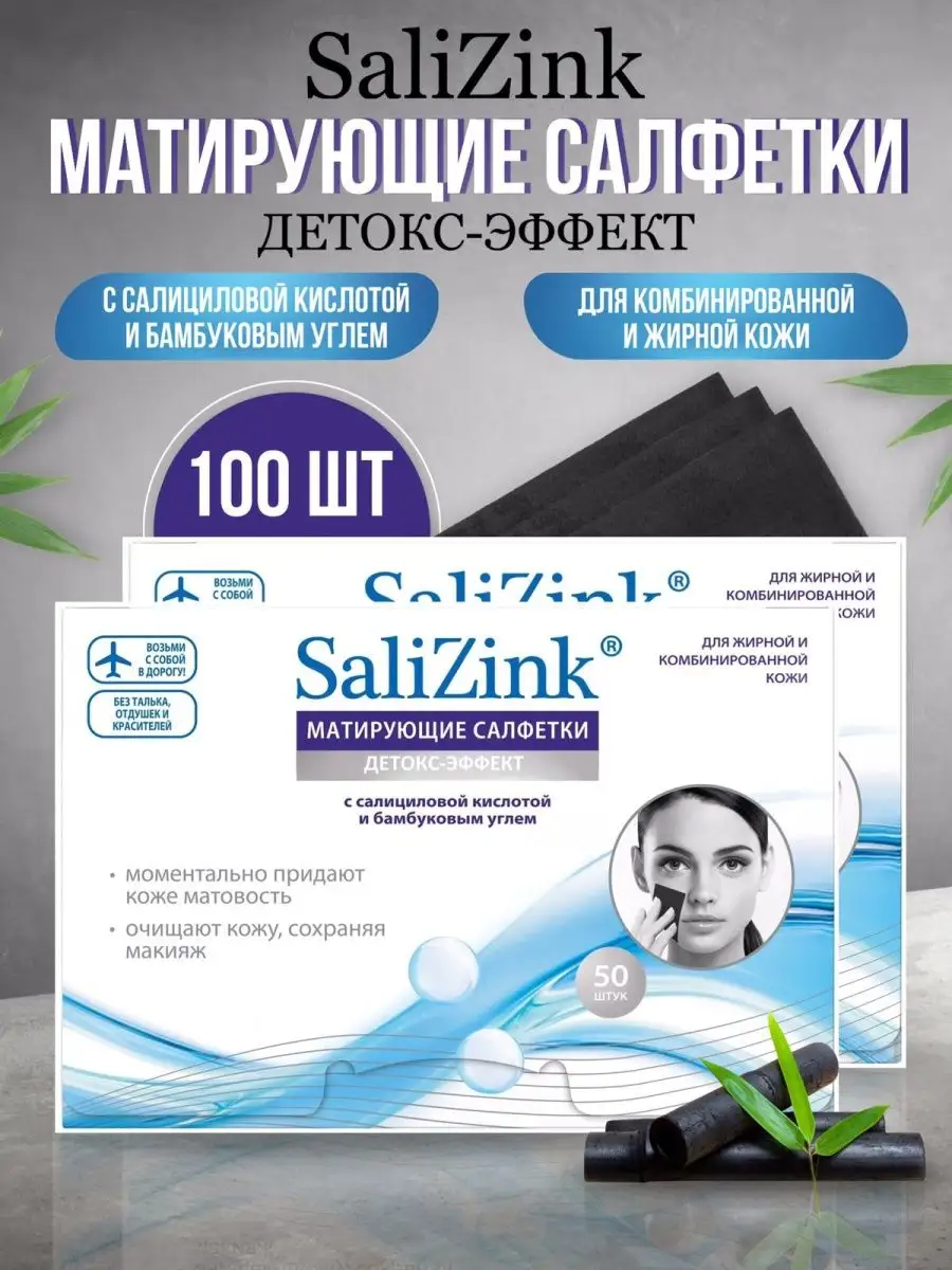 Комплектация Матирующие салфетки для лица SaliZink 50 штук - 2 упаковки