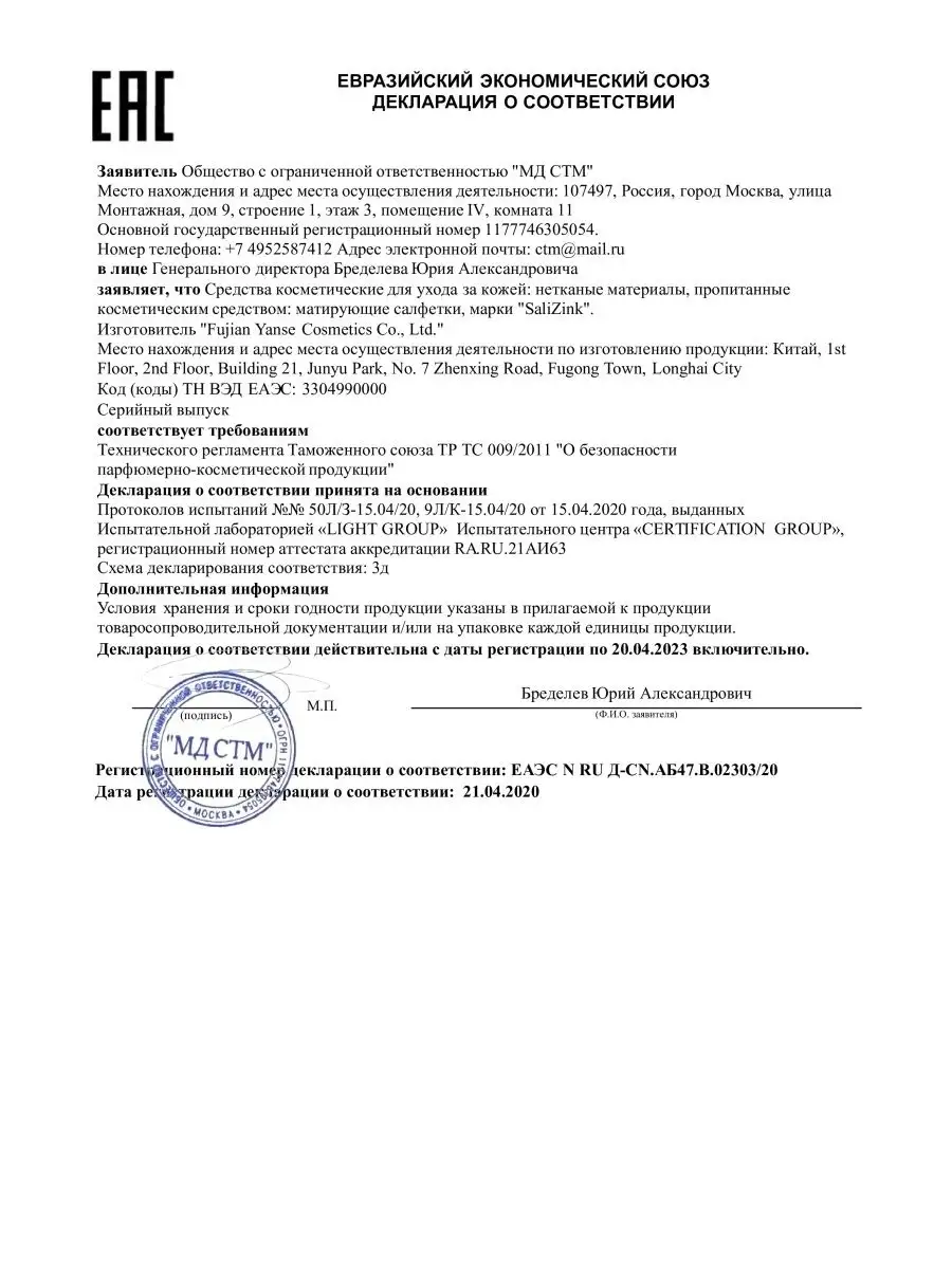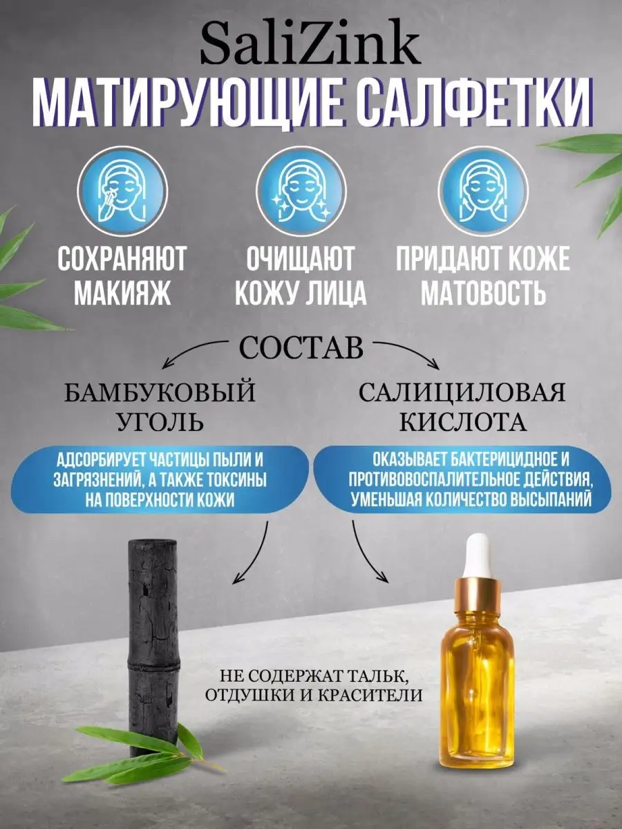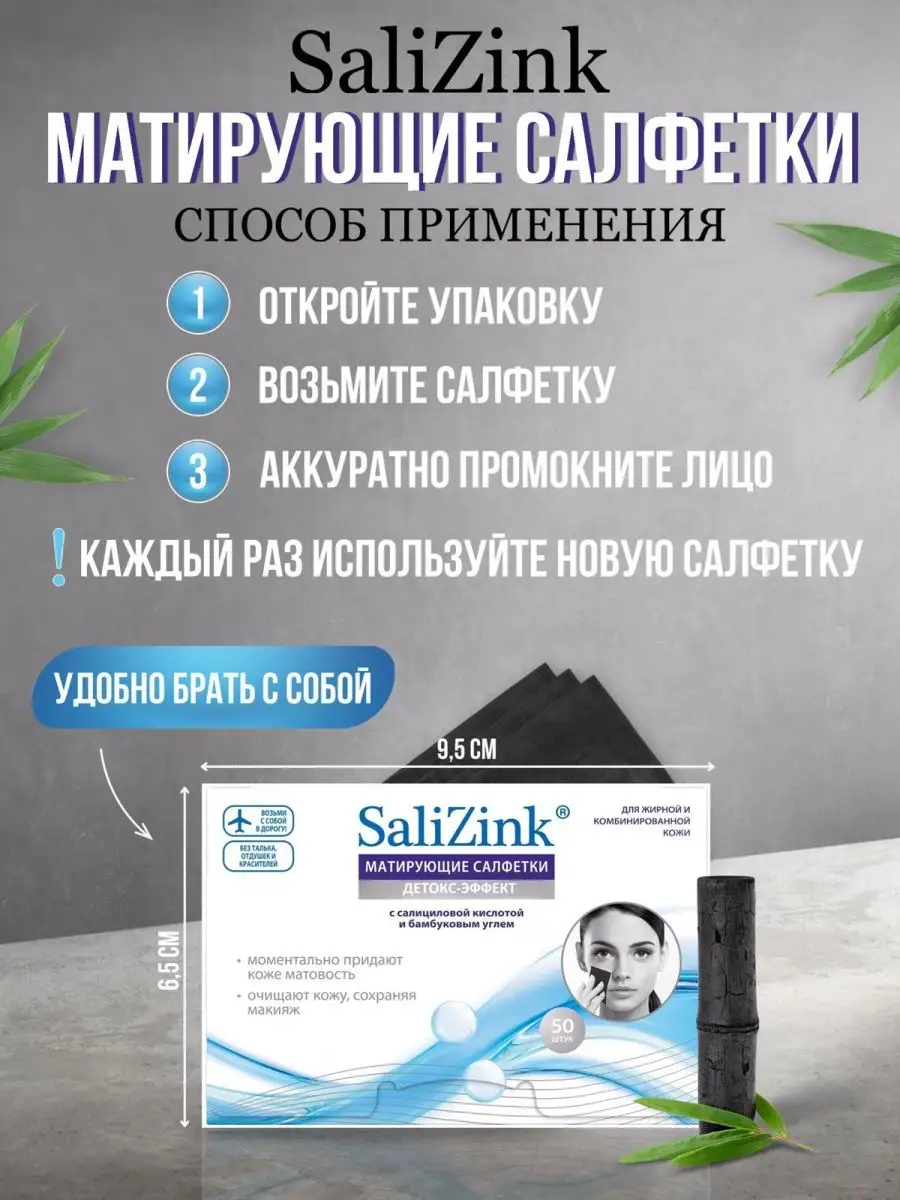 Матирующие салфетки для лица от жирного блеска SaliZink 50
