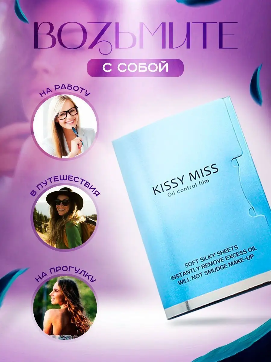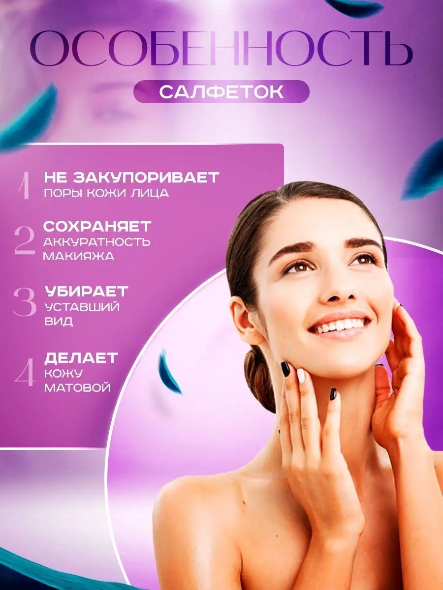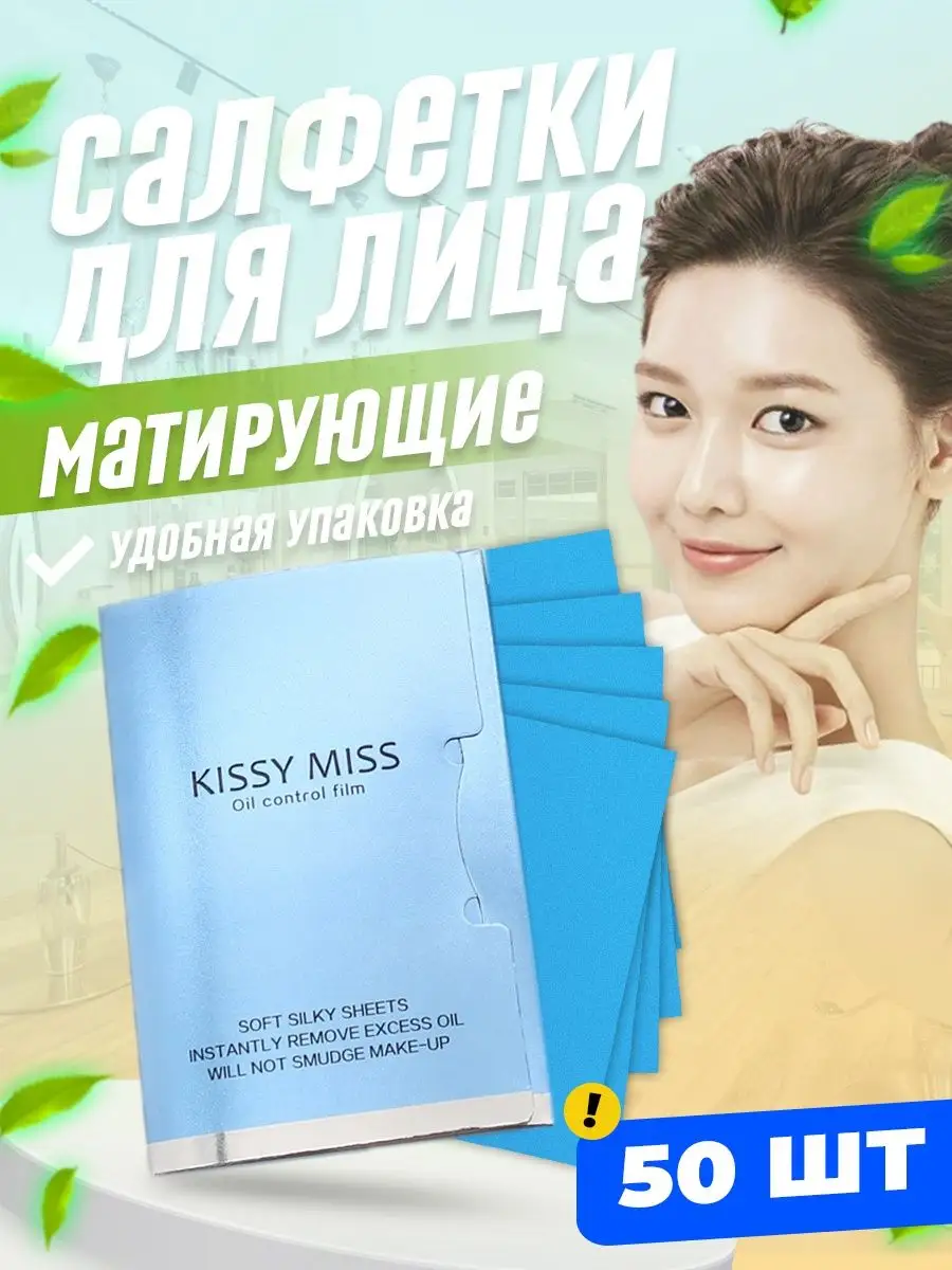 Матирующие салфетки для лица против жира и блеска 50 шт