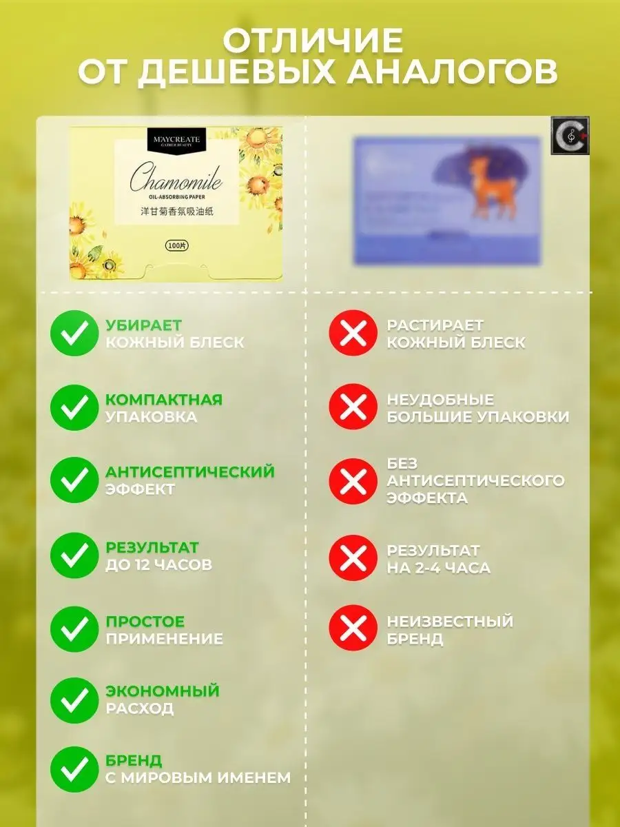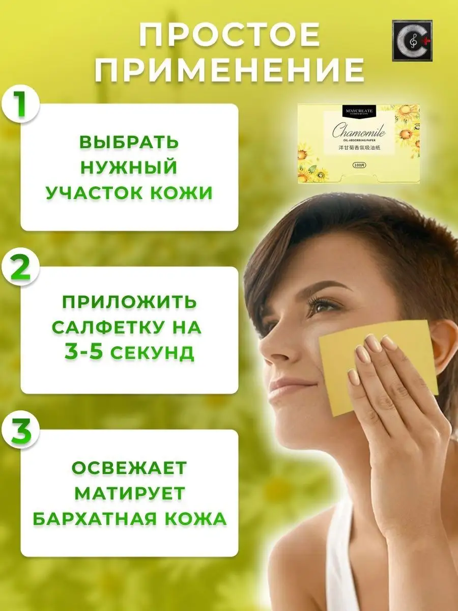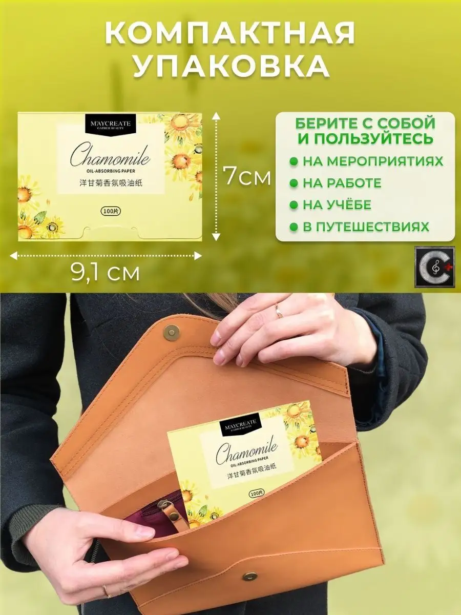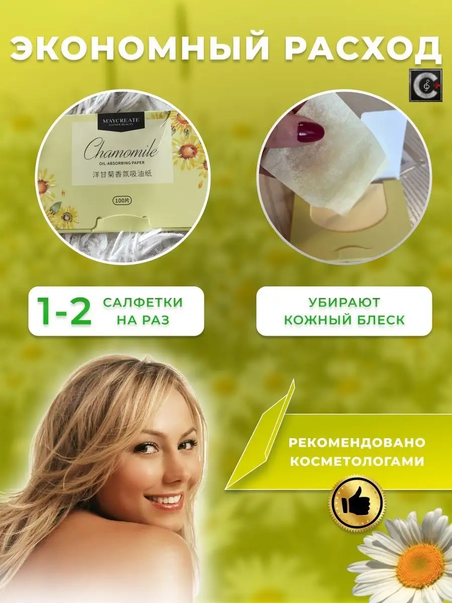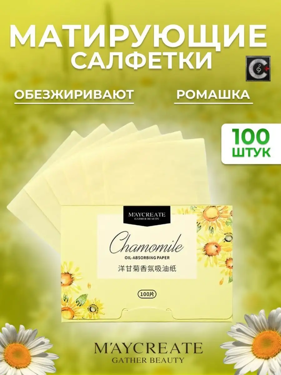 Комплектация матирующие салфетки для лица с ромашкой - 100 шт упаковки