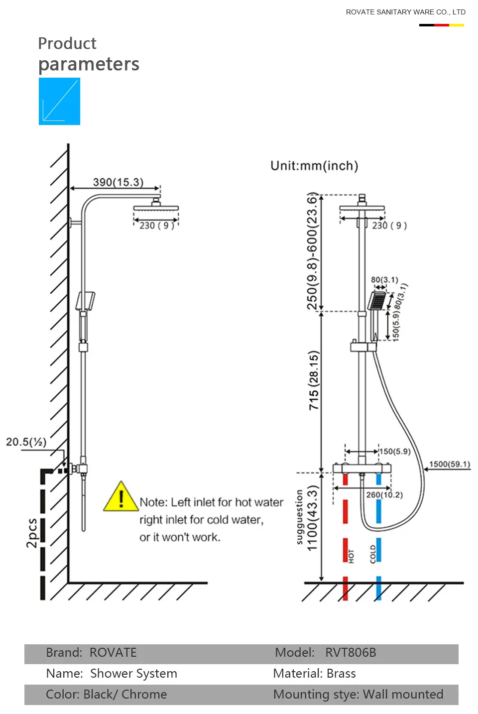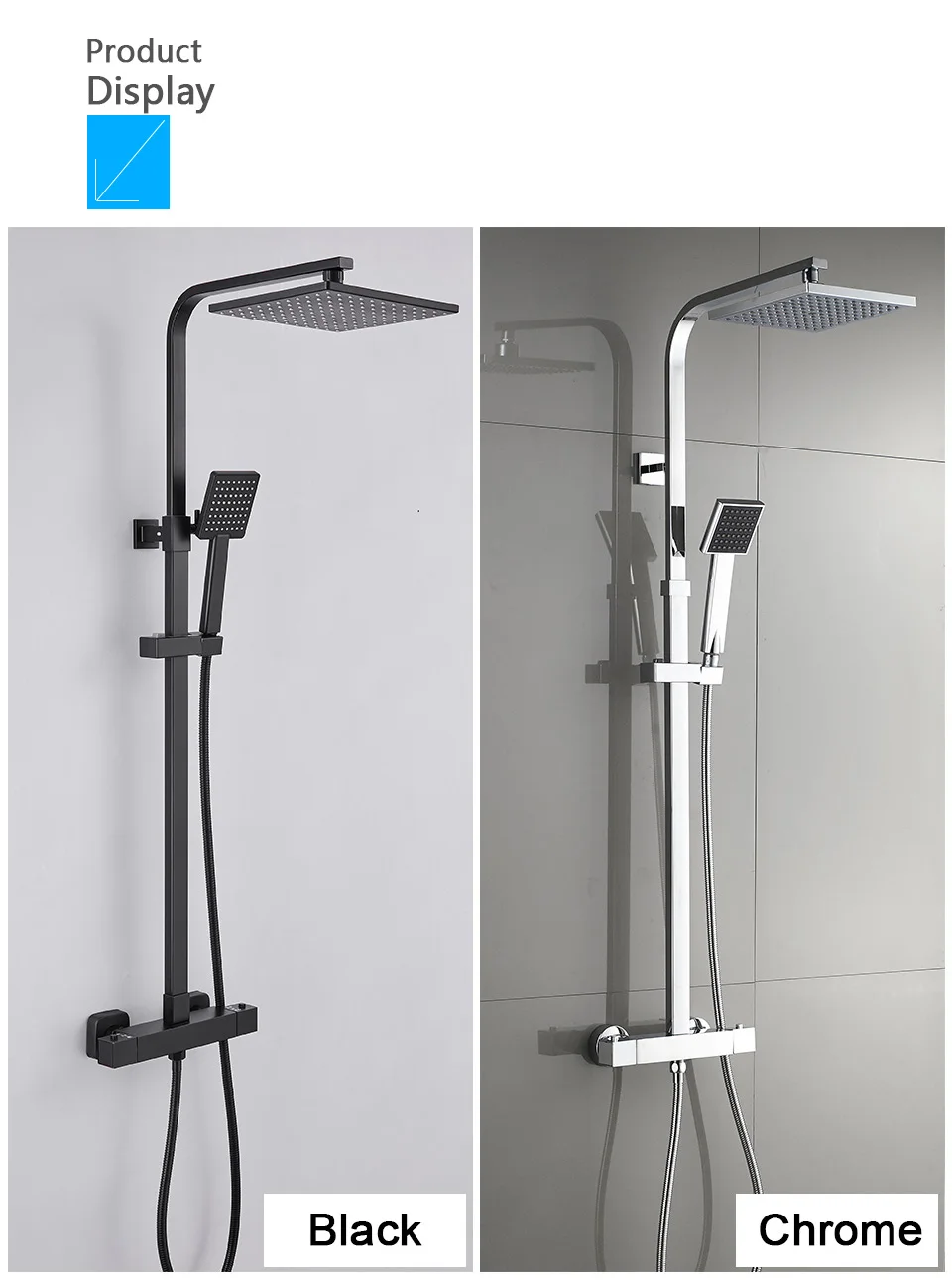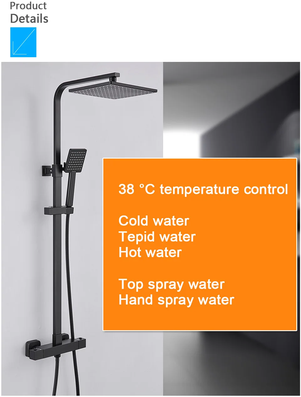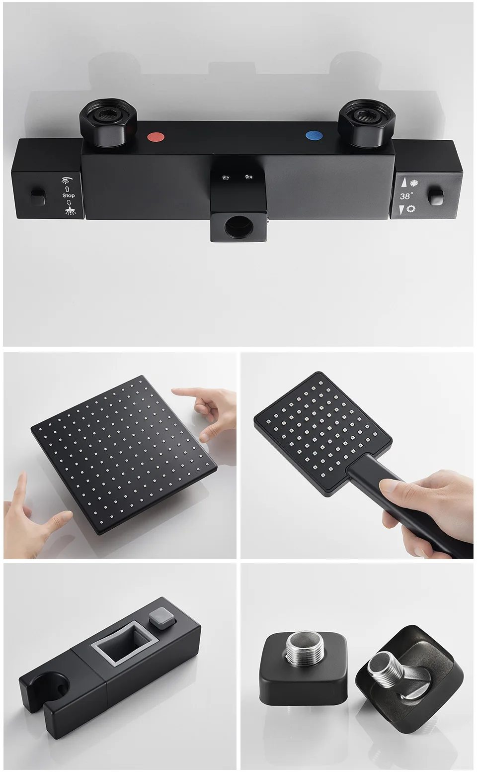 Матовая черная термостатическая Душевая система ROVATE, настенное крепление, двухфункциональный комплект ванной комнаты