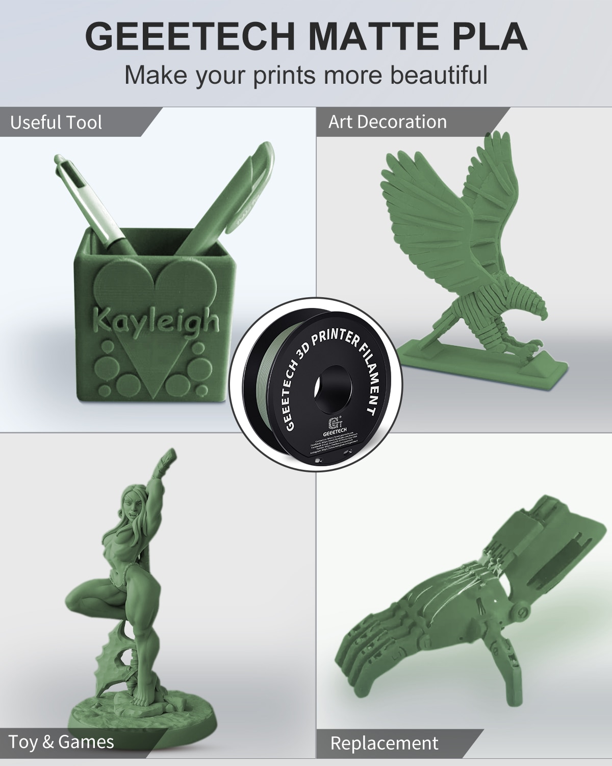 [Матовая PLA] -- эта PLA нитка может выводить матовую текстуру, отличающуюся от глянцевой pla, она является сдержанной и загадочной, обеспечивает лучший эффект печати-что определенно придает привлекательный вид.