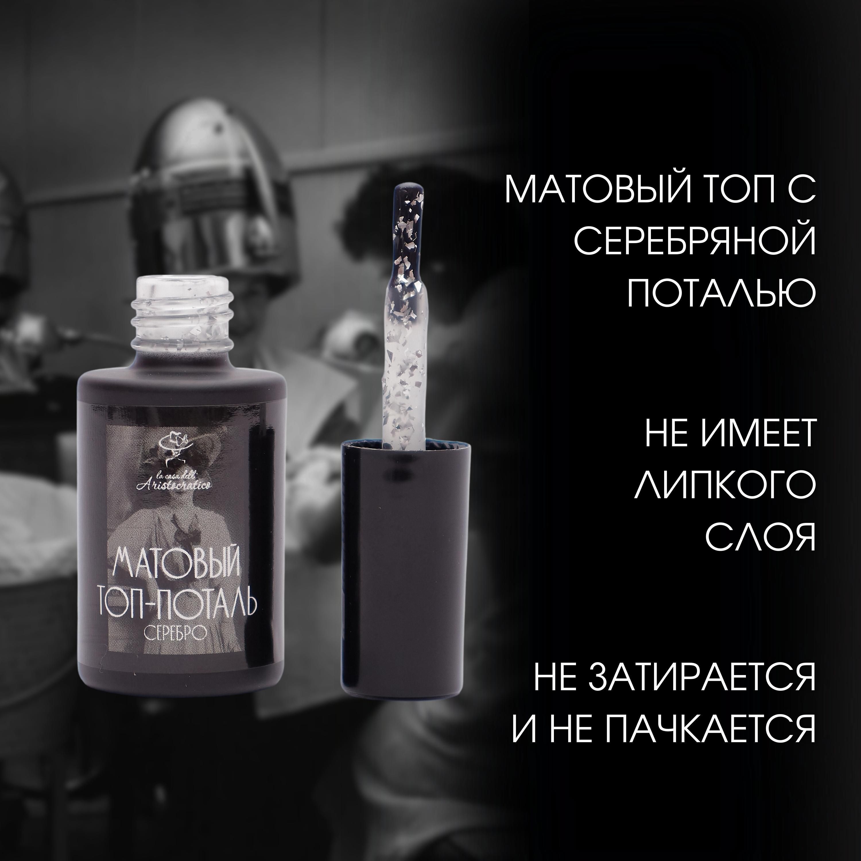 Матовый топ для ногтей для гель лака - поталь серебро