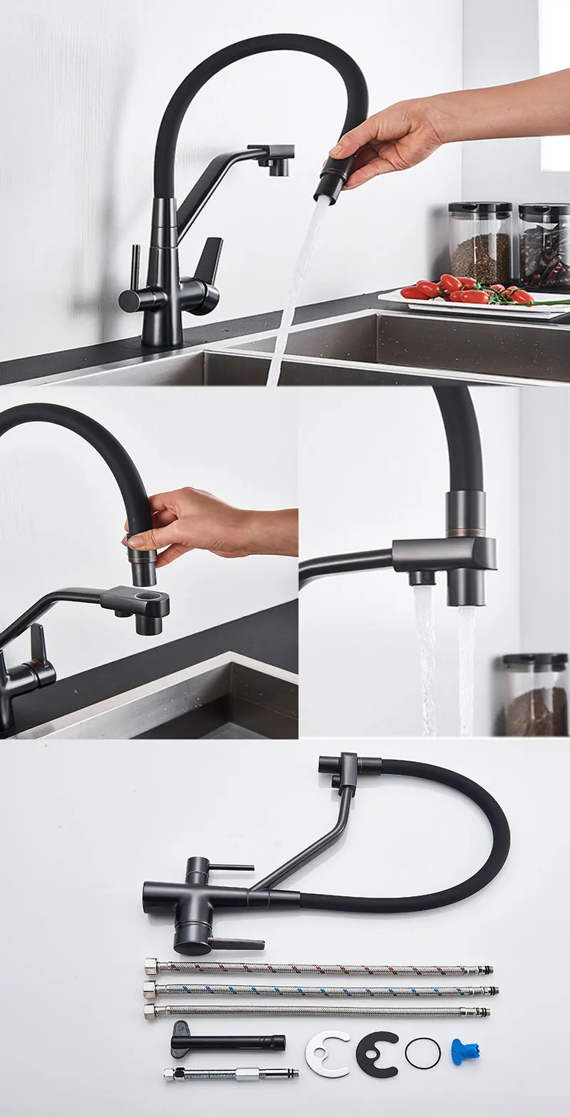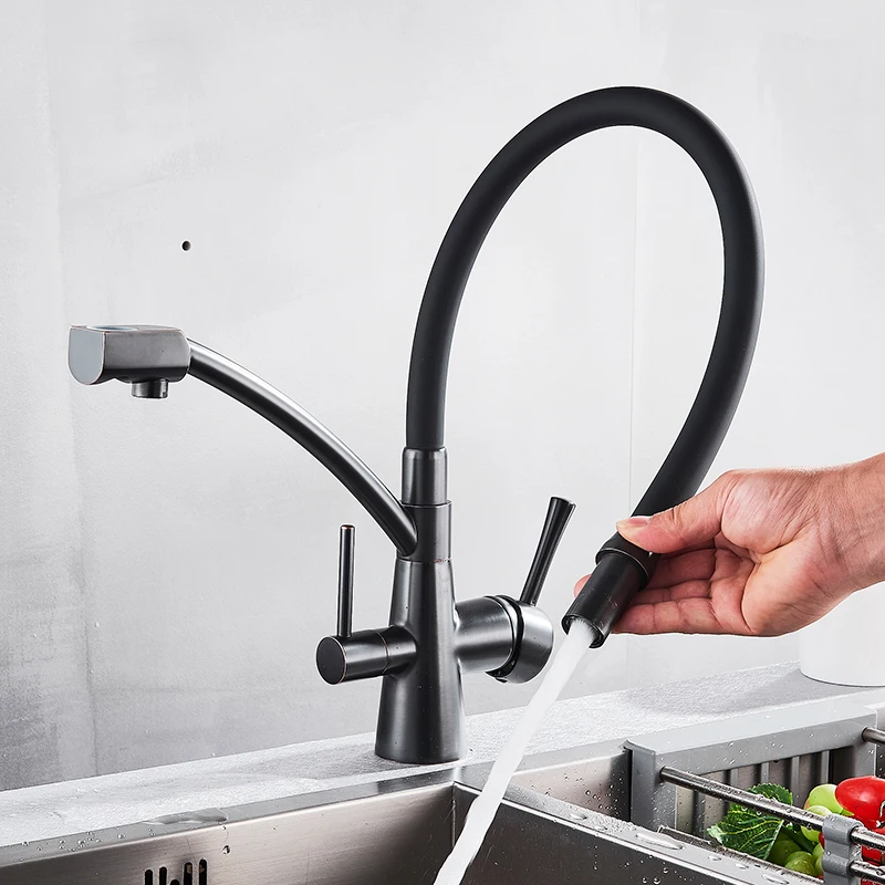Матовый золотой кухонный смеситель для раковины, смеситель для чистой воды, вытяжной кухонный смеситель с поворотом на 360 градусов, смеситель для горячей и холодной очистки
