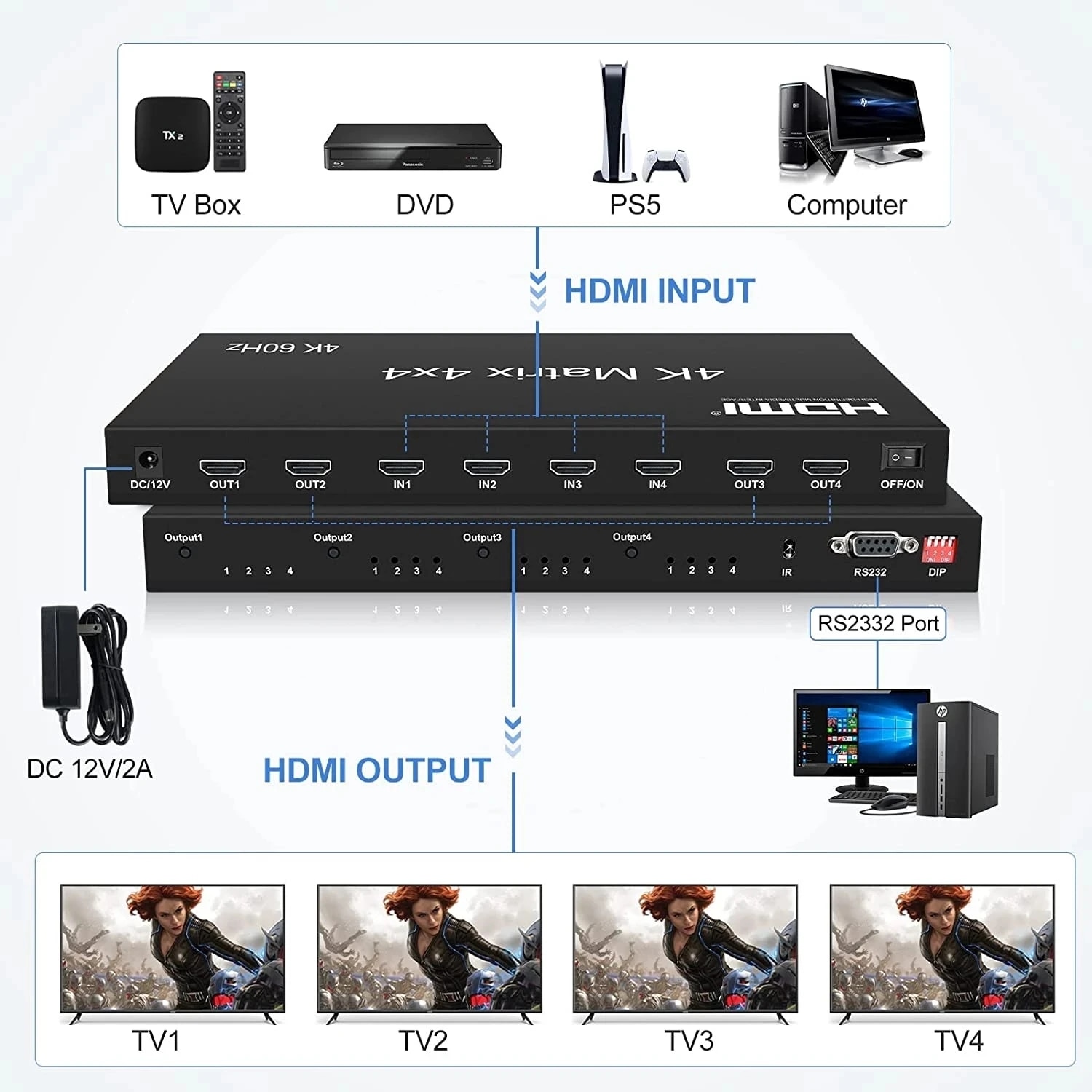 Described as "HDMI matrix 4x4"