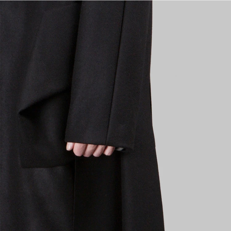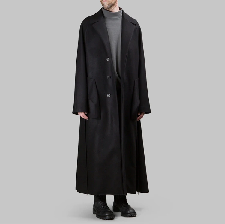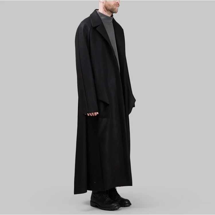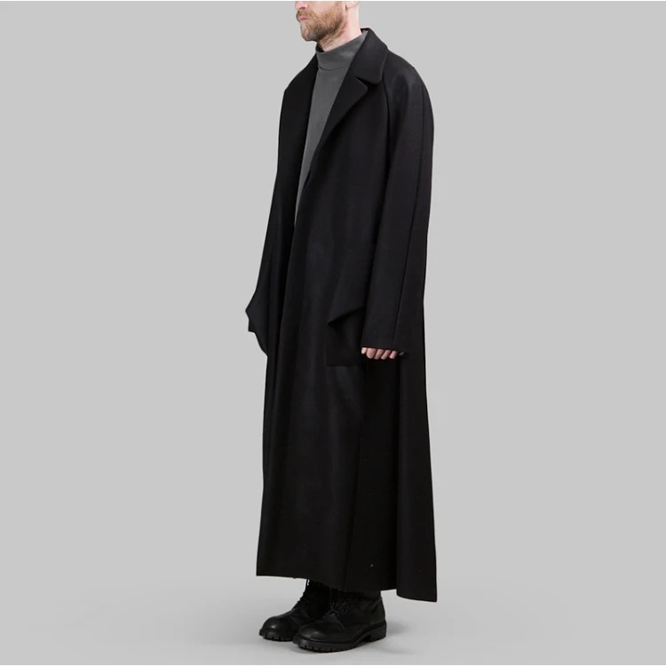 Mauroicardi Осень Зима Оверсайз Экстра Длинный Прохладный Черный Мягкая Шерсть & Смеси Пальто Мужчины Однобортные Свободные Стильные Роскошные Дизайнерские Моды 2023