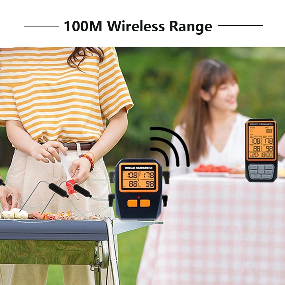 Удаленный термометр для мяса Беспроводной цифровой пищевой термометр, термометр для приготовления пищи с 4 датчиками, термометр для гриля-барбекю для кухни, коптильни, духовки, диапазон 328 футов, ЖК-экран с подсветкой