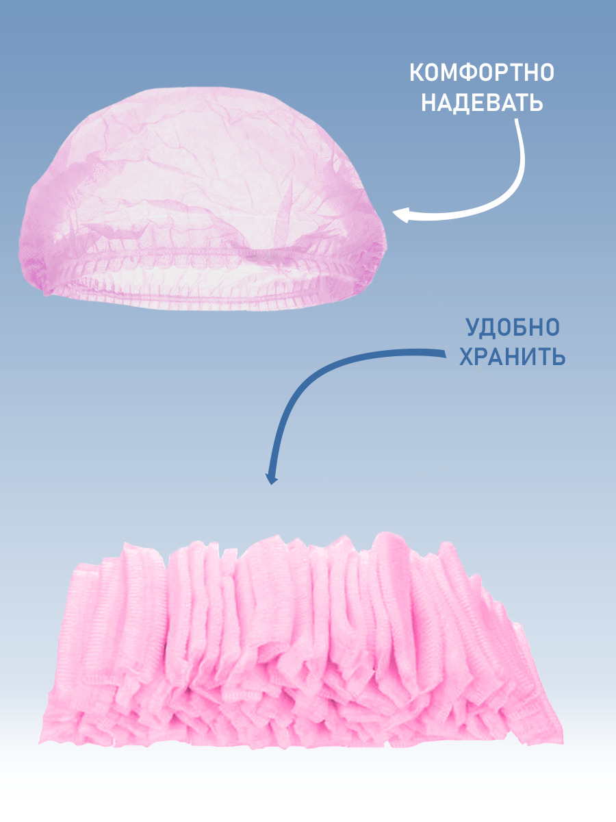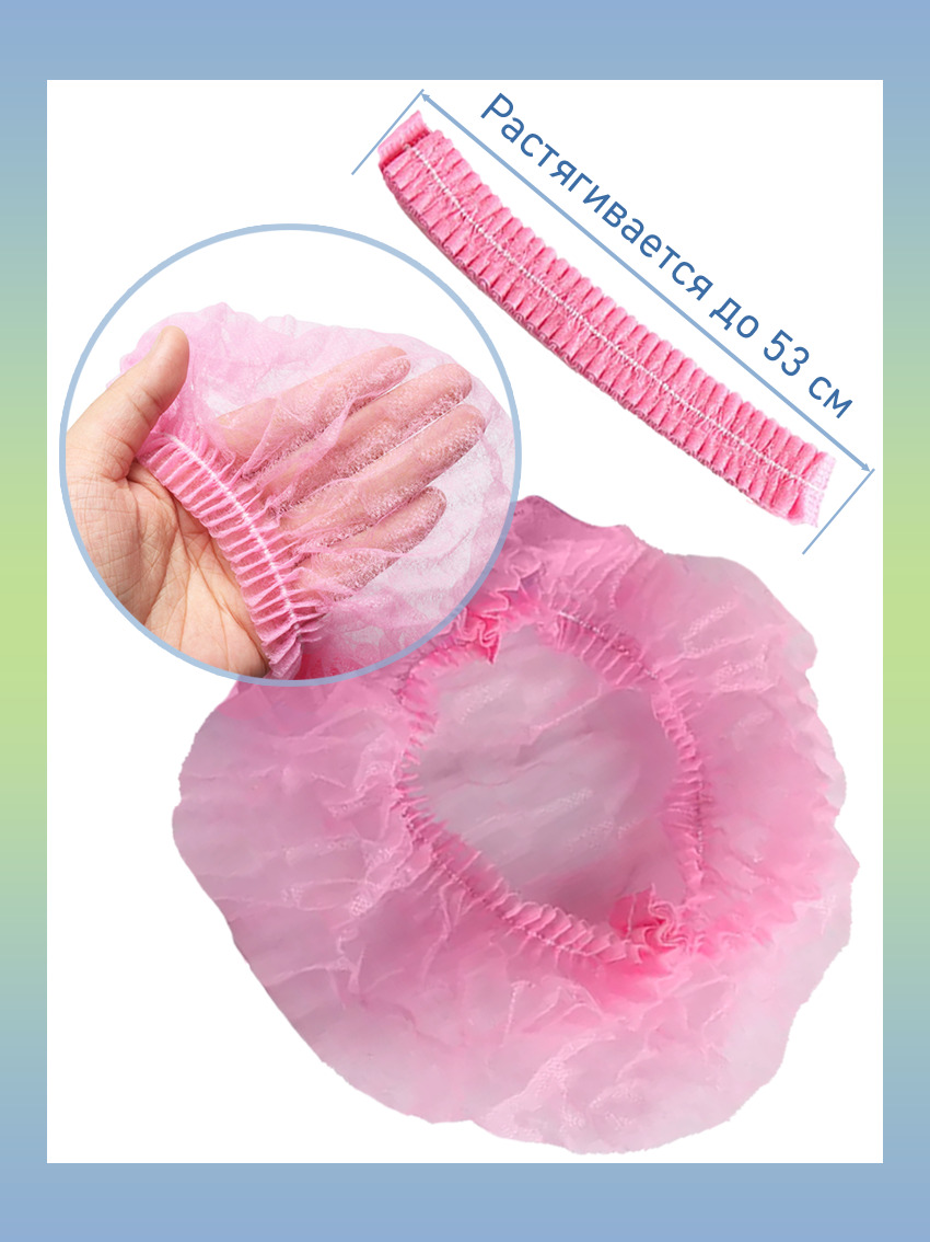 Медицинская шапочка одноразовая розовая для косметики 100 штук , косметическая Шарлотка / Шарлотта , шт шапки для дома / берет для процедур медицины спа салонов красоты костюм