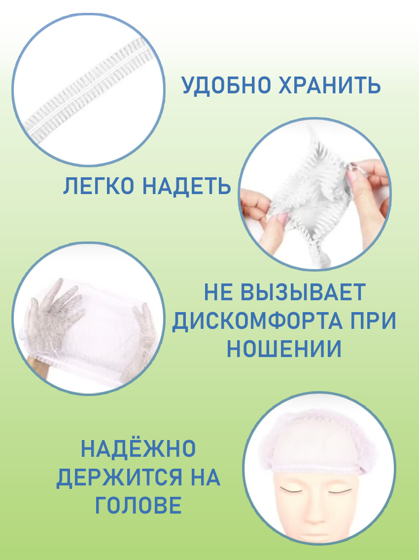 Описание: Шапочка одноразовая косметическая CLEAN GREEN тип "Шарлотта"