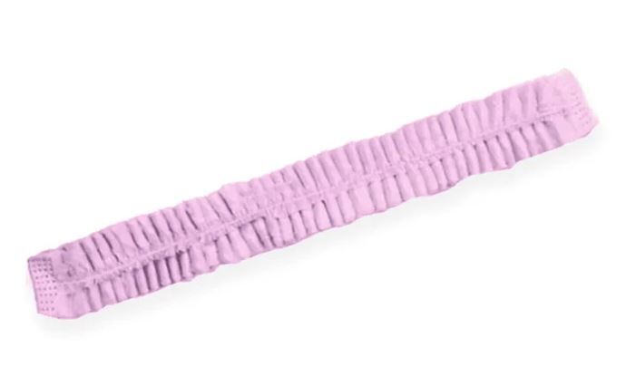 Изготовлена из нетканного материала в виде гофрированной полоски с резинкой, расправляется непосредственно перед применением. Рассчитана на объемные прически и длинные волосы, резинка мягкая, не оставляет следов после длительного использования. Спанбонд воздухопроницаем, что позволяет коже головы "дышать" и носить шапочку длительное время.