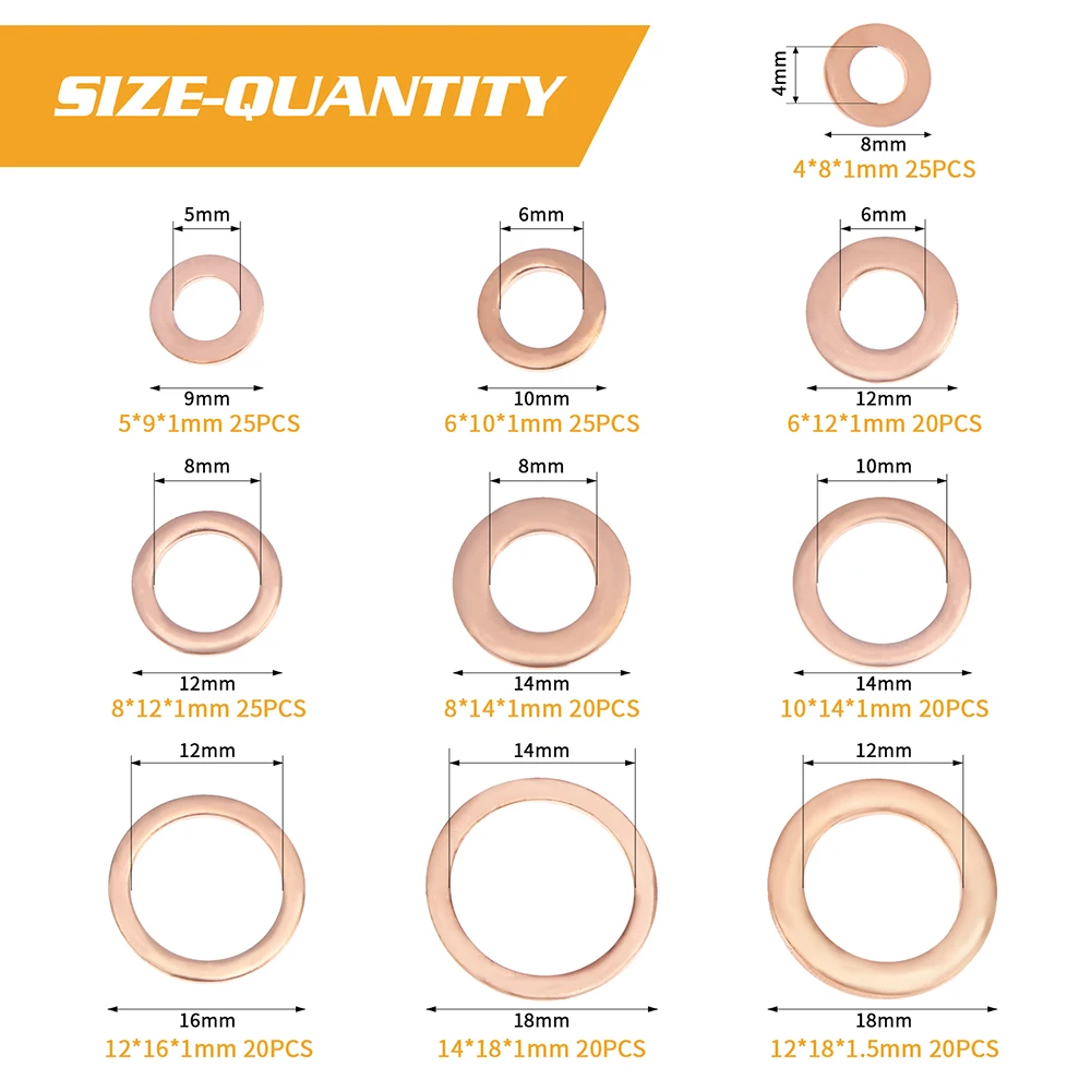Медное уплотнение, 280/200/120/100 шт., твердое уплотнительное кольцо шайба, заглушка для масла для лодки, плоское уплотнительное кольцо, Аксессуары для инструментов