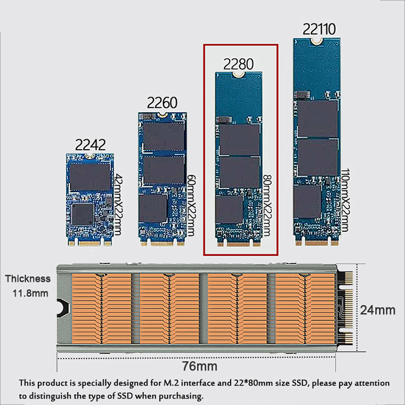 Медный радиатор SSD M.2 NVMe 2280