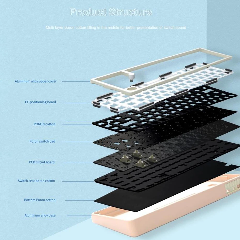 Комплект механической клавиатуры с ручкой DIY Механическая клавиатура RGB-подсветка Алюминиевый сплав 3-режимное соединение для настольных портативных ПК