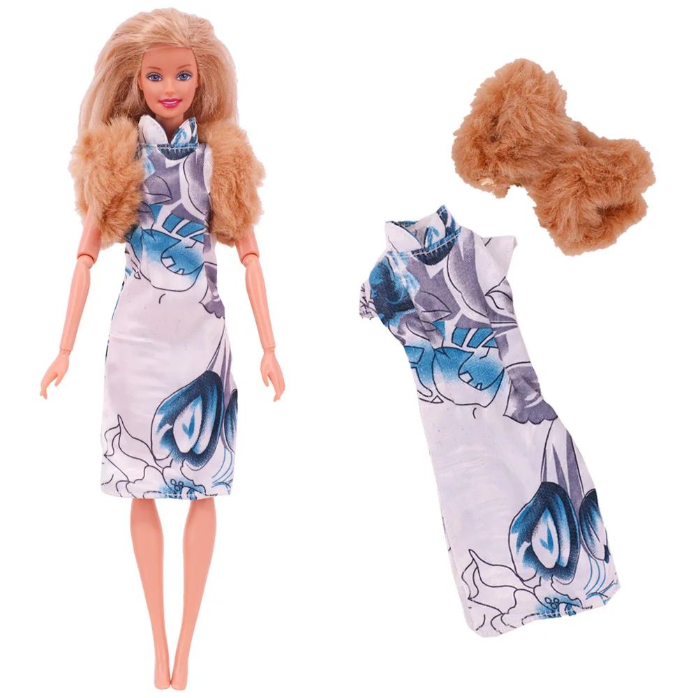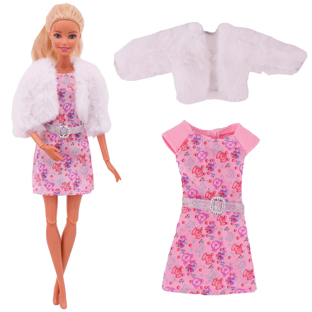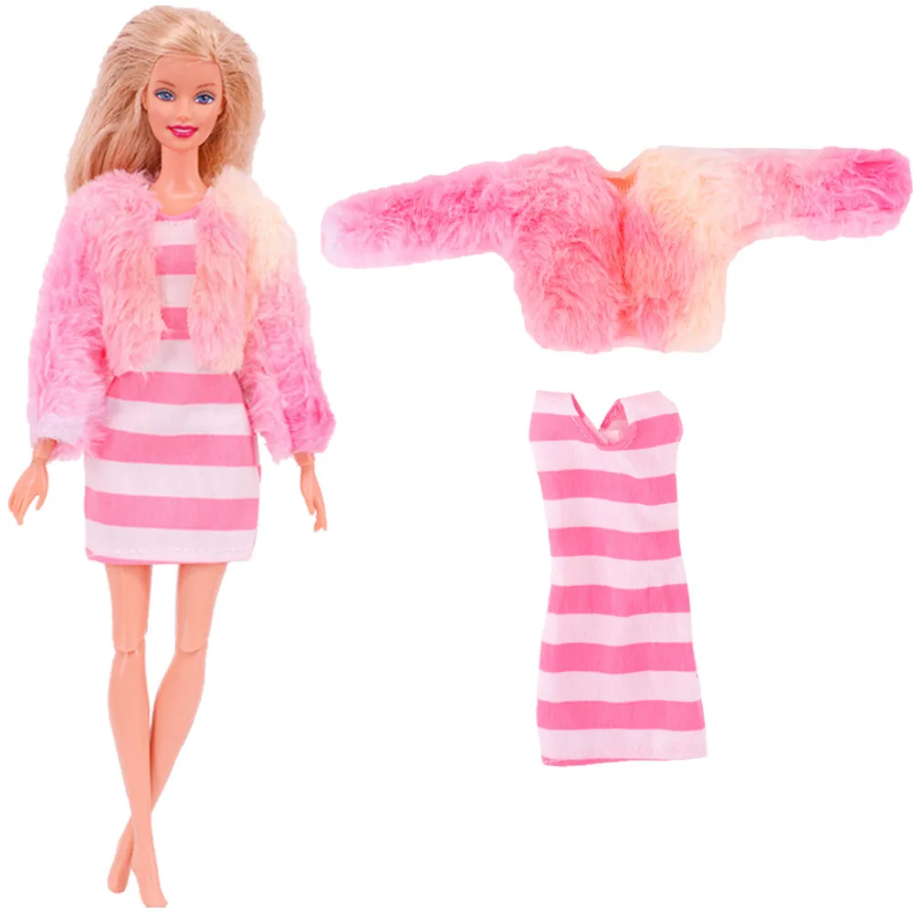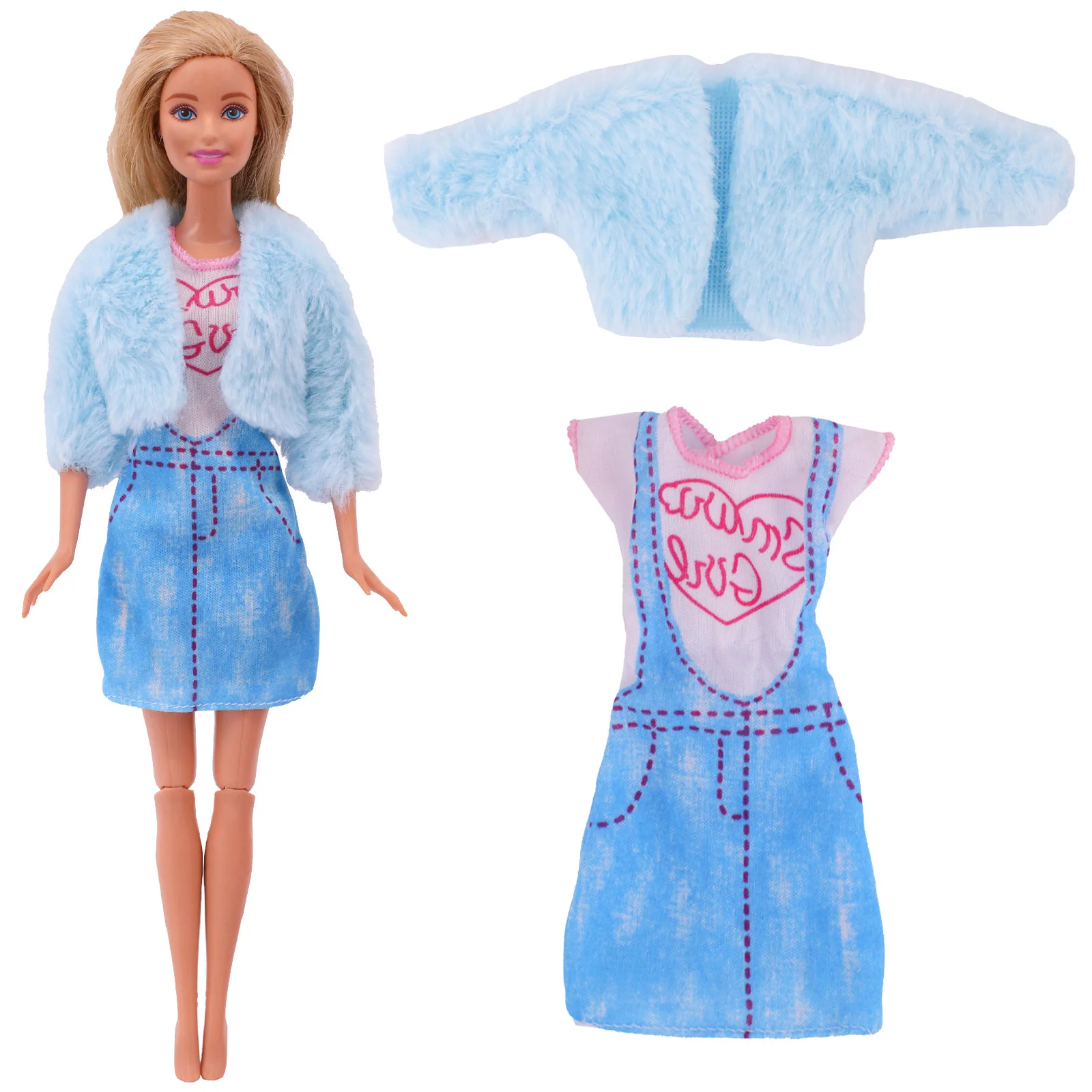Меховое пальто + юбка, сексуальная одежда для Барби, плюшевый жилет, блестящая юбка с запахом, Одежда для куклы, наряд, платье, модное пальто, аксессуары для кукол, подарки