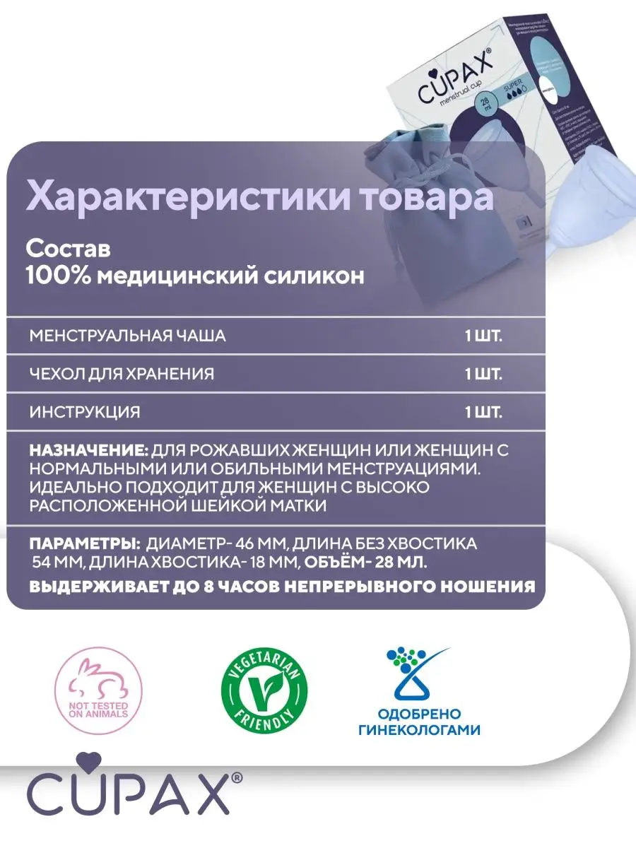 Менструальная чаша КАПАКС СУПЕР28мл CUPAX SUPER 28мл