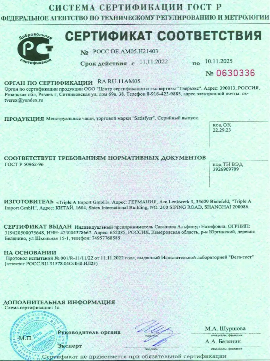 Комплектация менструальная чаша - 2 шт; Мешочек для хранения