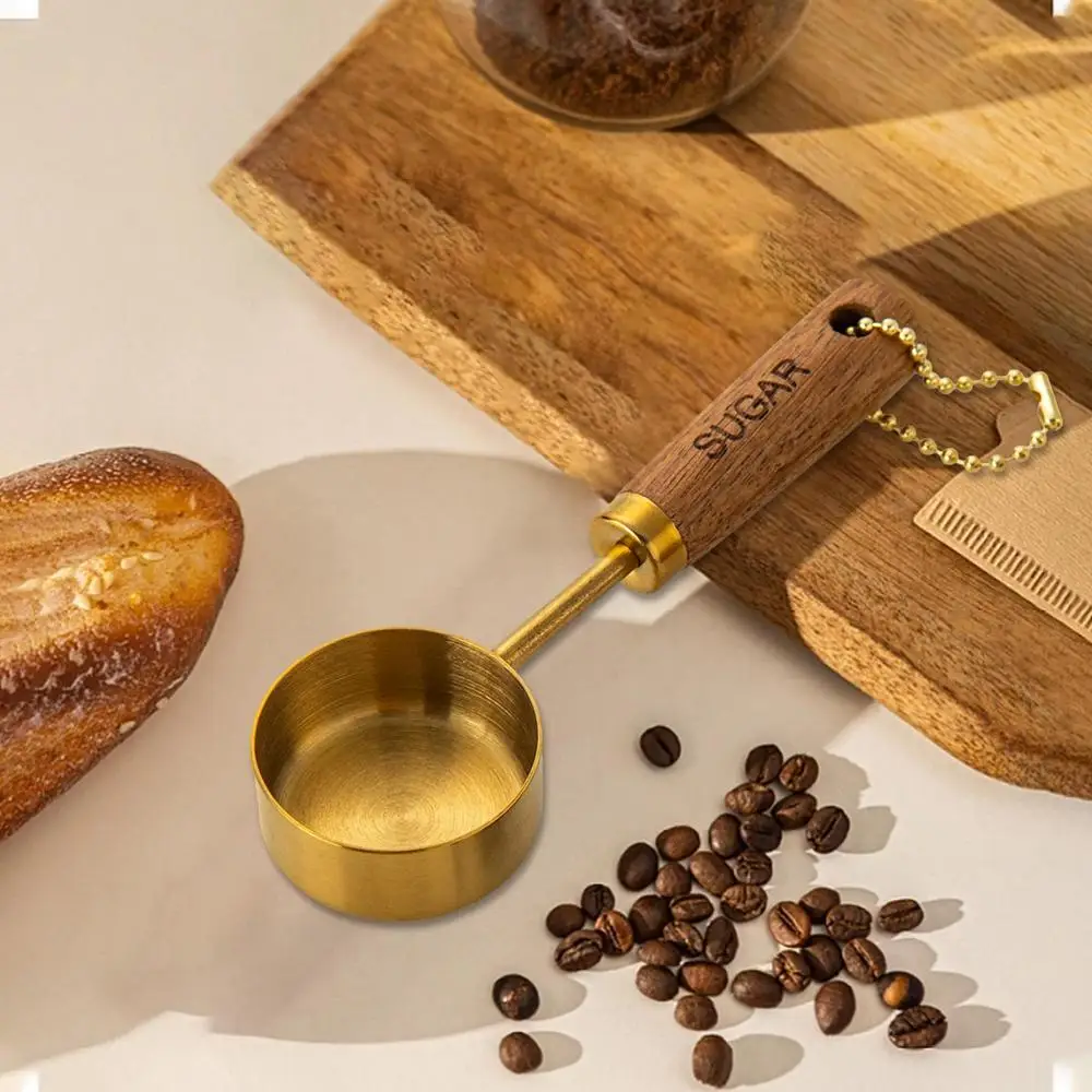 Мерная ложка из нержавеющей стали, серебристая, золотистая, деревянная мерная ложка, градуированная мерная чашка для кухни, ложка для приправ и выпечки