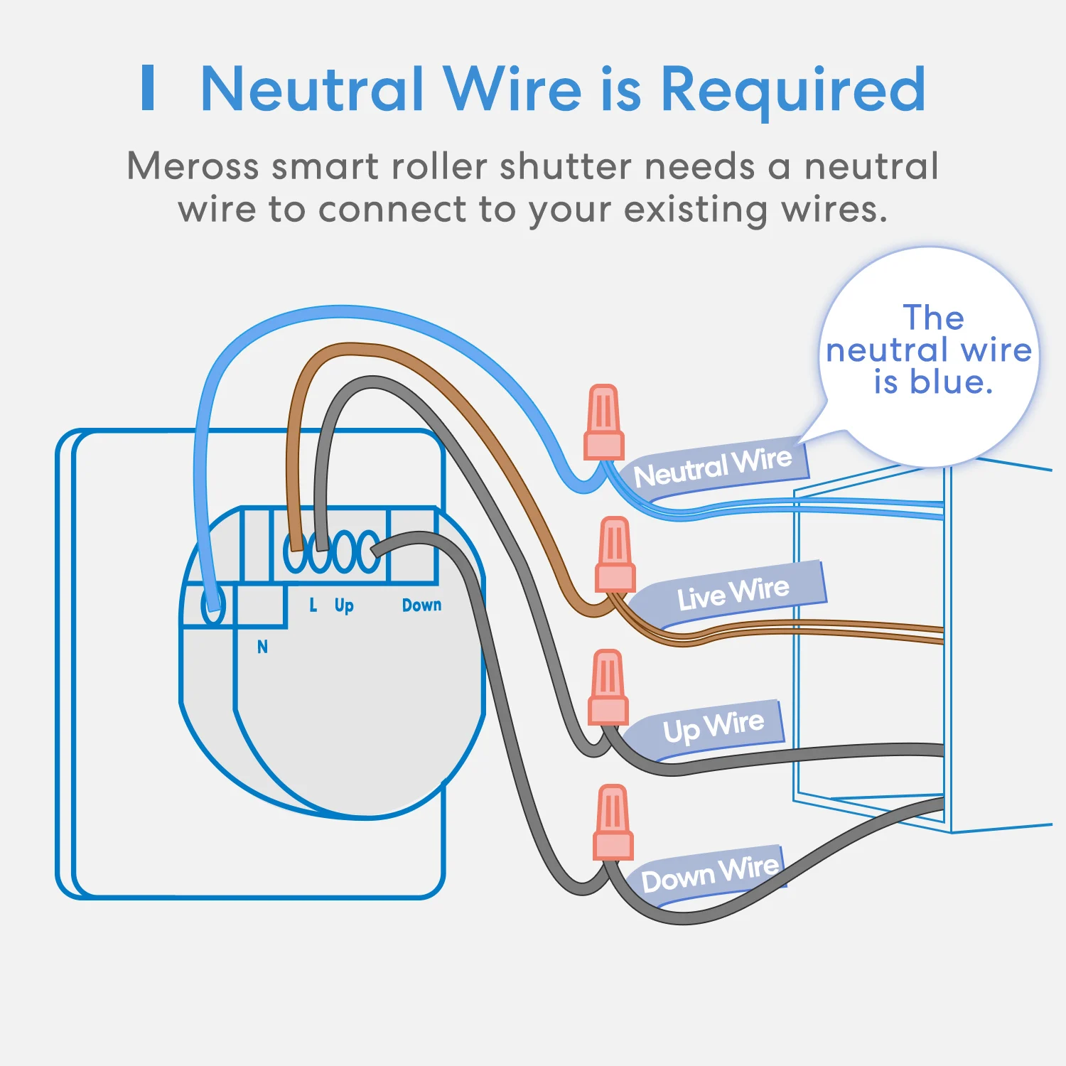 Для умной рольставни Meross требуется нейтральный провод для подключения к существующим проводам.