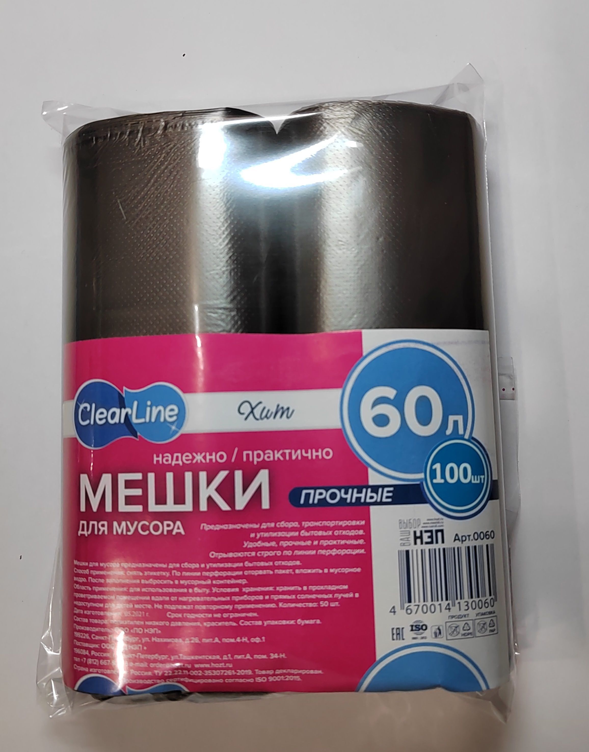 Мешки для мусора Clear Line 60 л, 100 шт