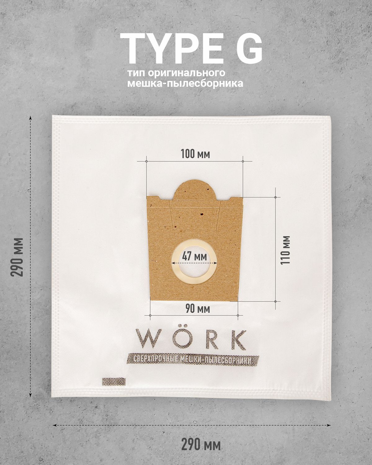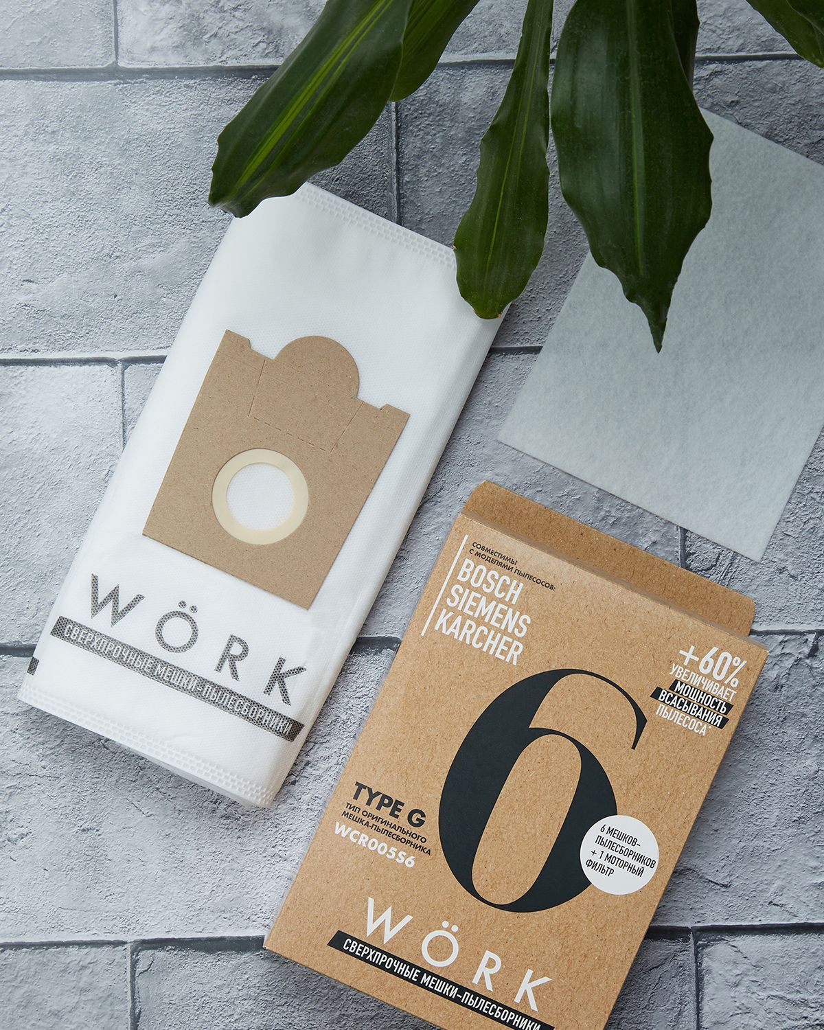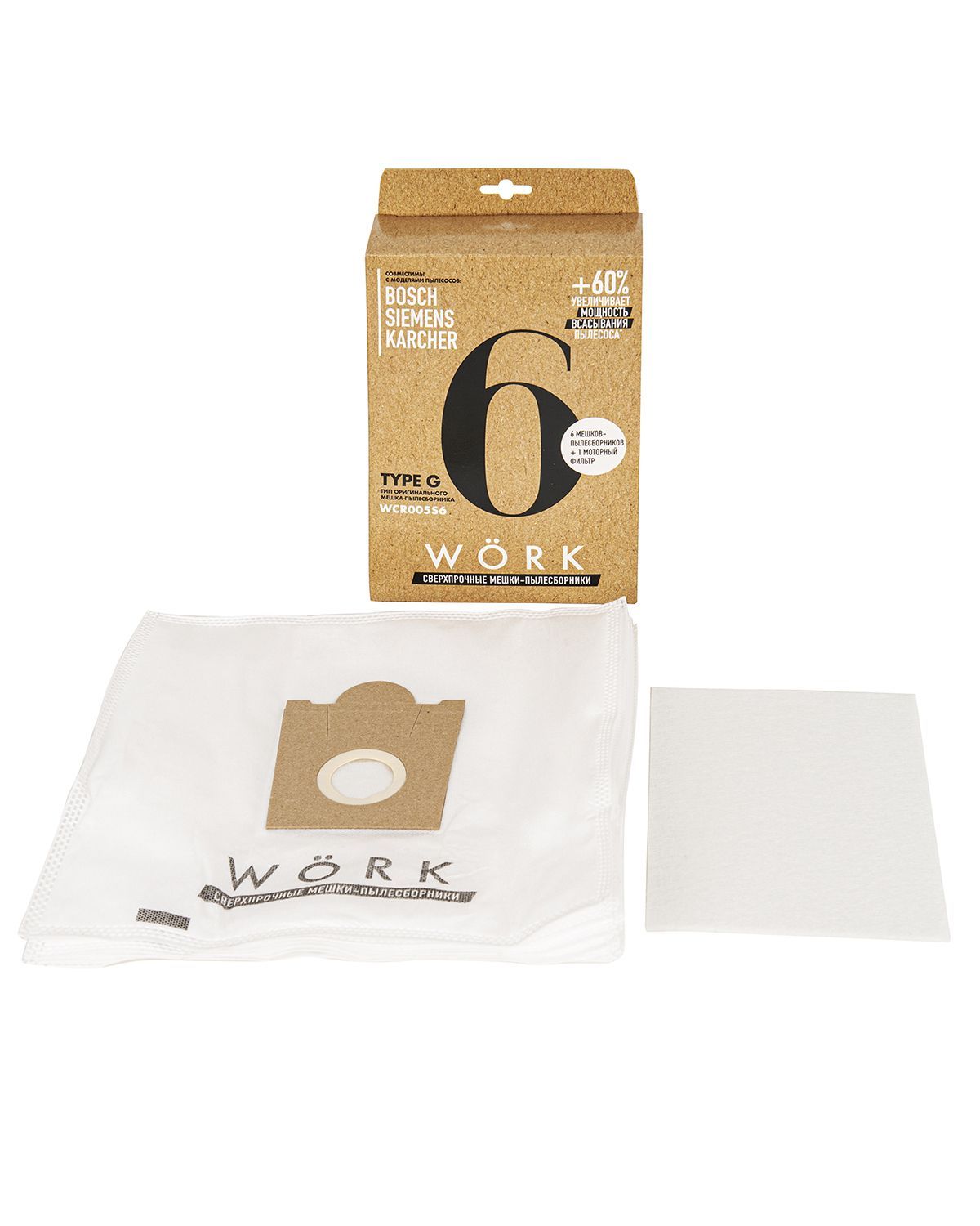 Описание: Wörk WCR005S6 - синтетические пылесборники для пылесоса Bosch, тип мешка «Typ G». В комплекте 6 шт. мешков + 1 шт. микрофильтр для защиты мотора пылесоса.