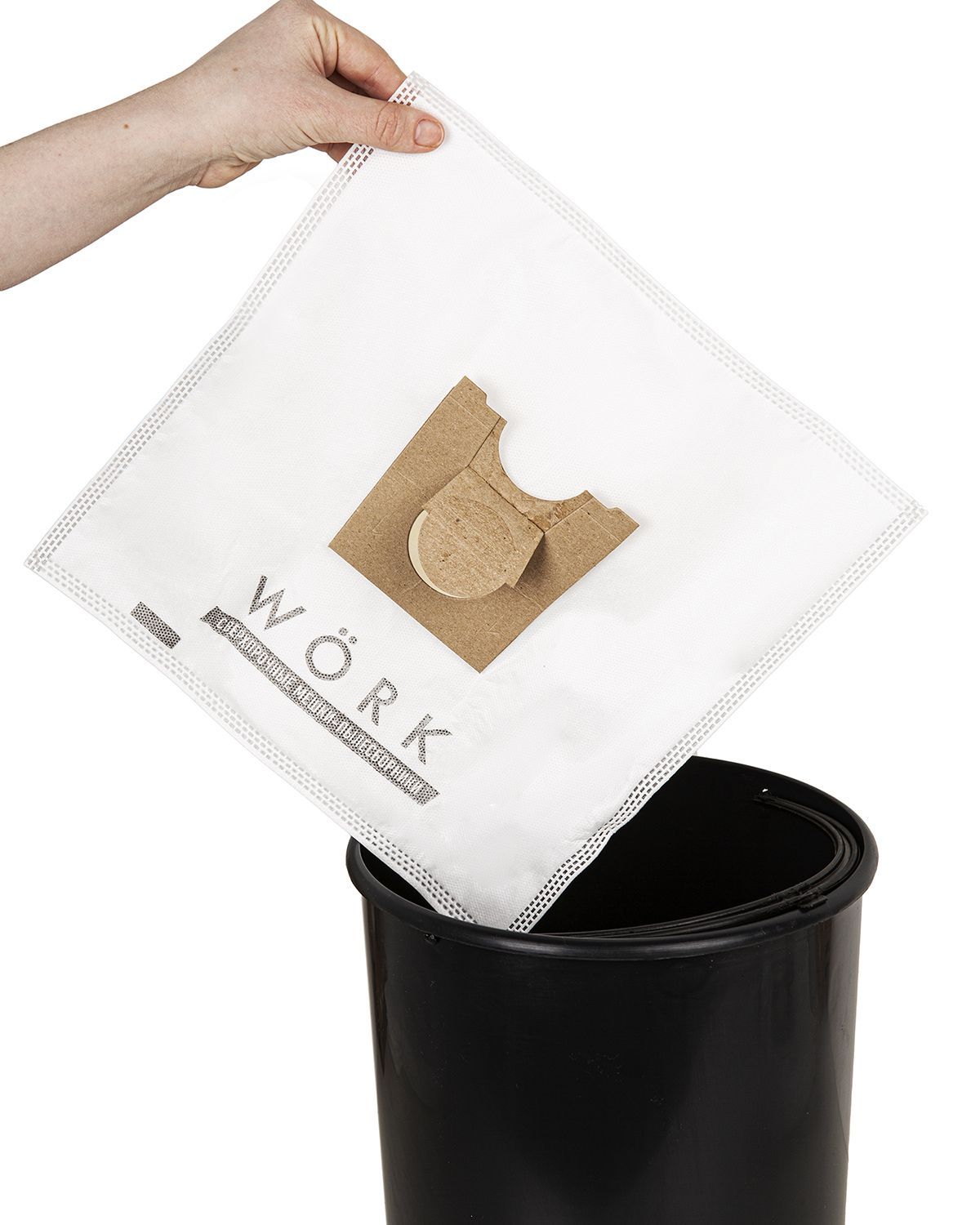 Материал из которого сделан мешок - полностью разлагается после выбрасывания в мусорку! Мешки Wörk - это забота о планете и ответственное использование бытовой техники.