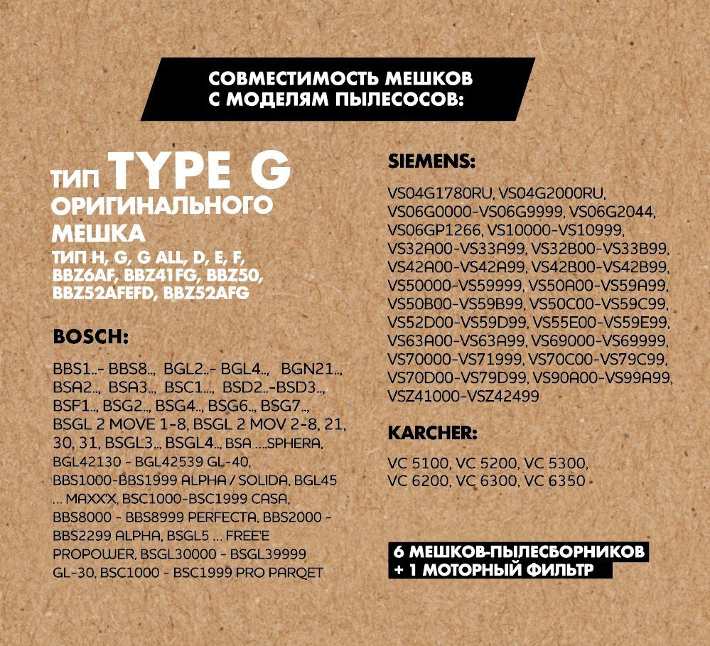 Мешки-пылесборники для пылесоса Bosch совместим с типами: Typ B, C, D, E, F, G, G ALL Powerprotect, GXL, GXXL, H, BBZ10TFG, BBZ41FG, VZ41AFG, BBZ41FGALL.