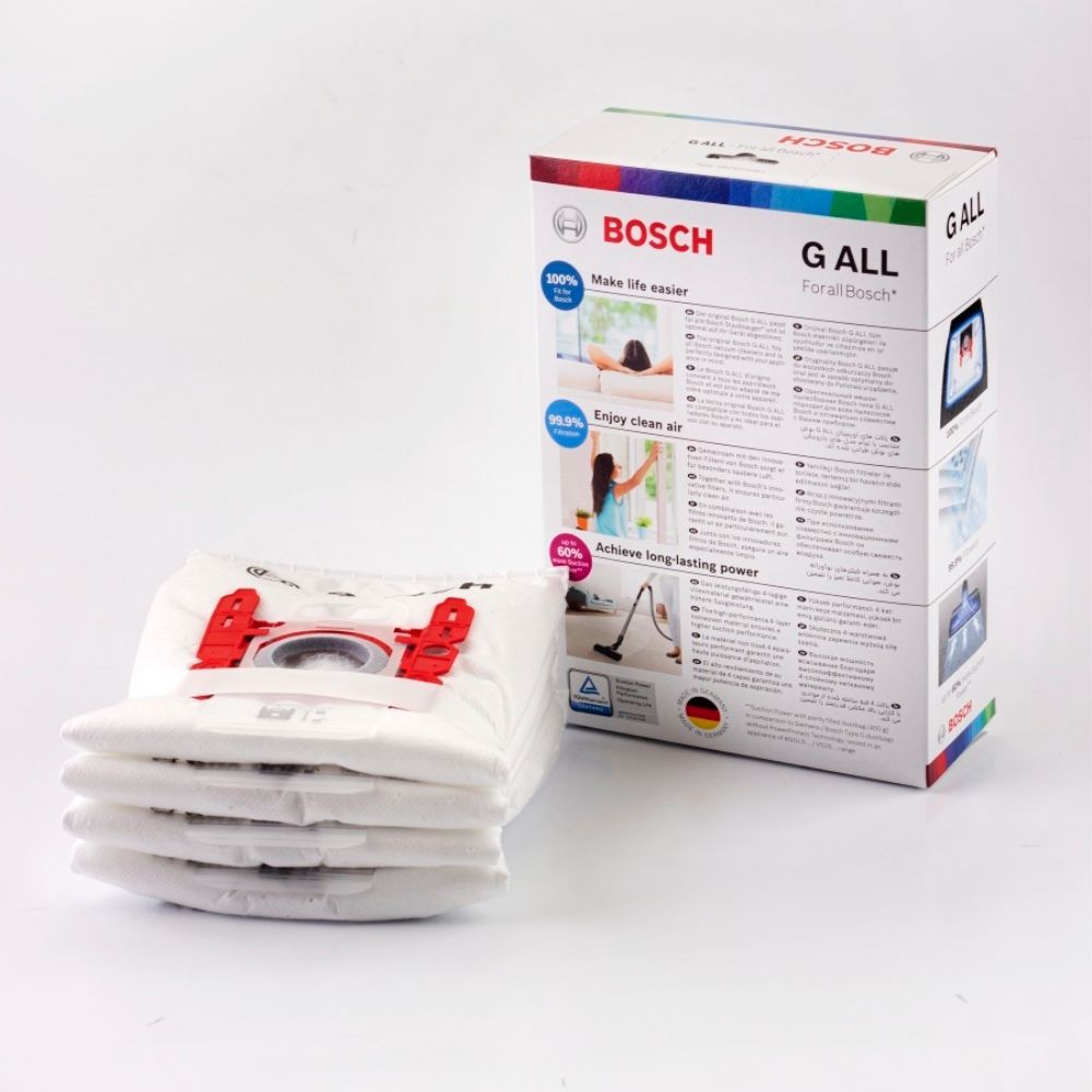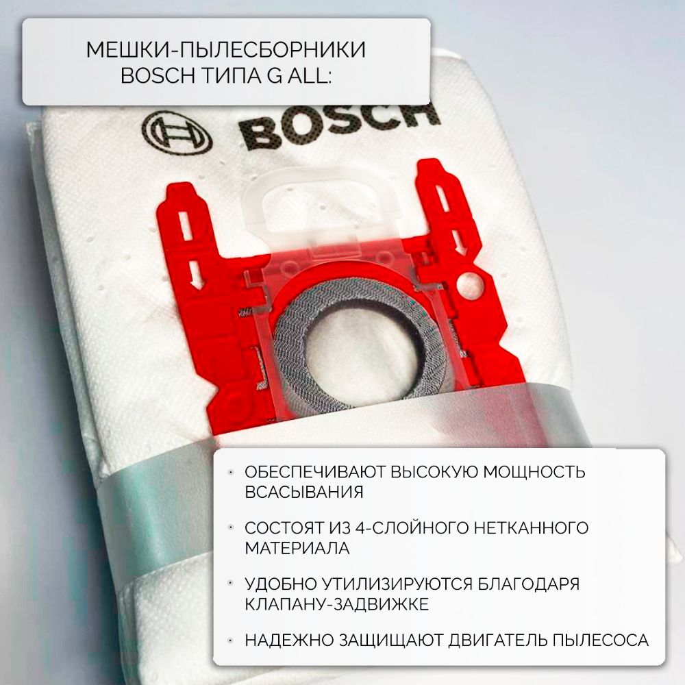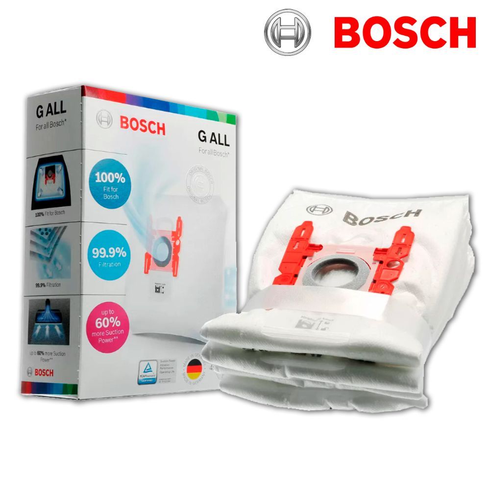 4 пылесборника в каждой упаковке!Соответствует аксессуару BBZ41FGALL (мешок для пылесоса Bosch)Оригинальный мешок пылесборник Bosch G ALL подходит для всех пылесосов Бош и оптимально совместим с Вашим прибором.
