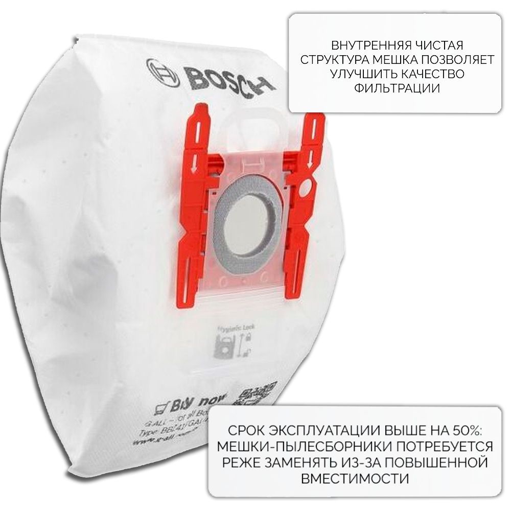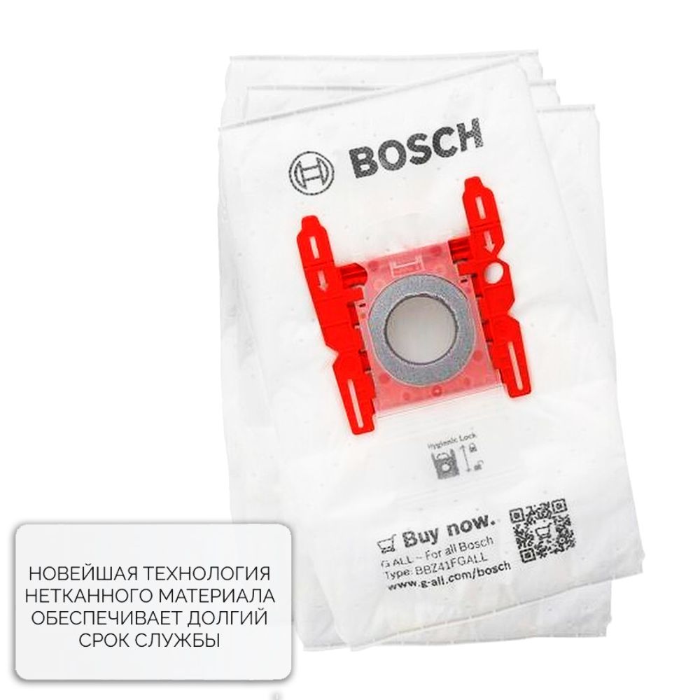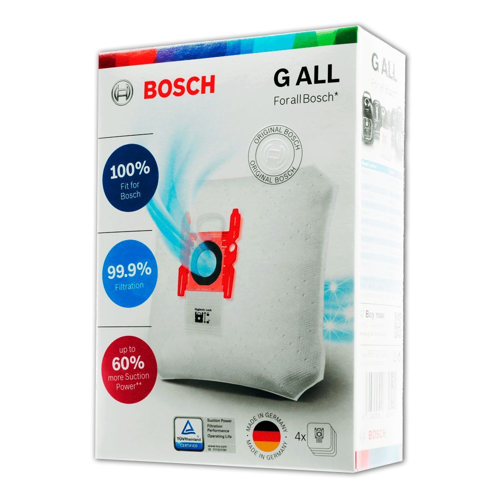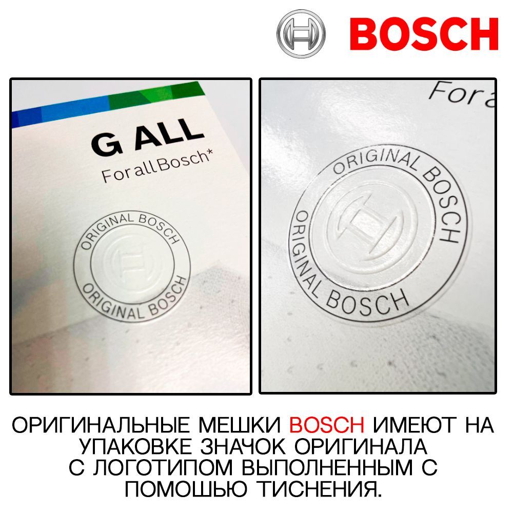 4 пылесборника в каждой упаковке!Соответствует аксессуару BBZ41FGALL (мешок для пылесоса Bosch)Оригинальный мешок пылесборник Bosch G ALL подходит для всех пылесосов Бош и оптимально совместим с Вашим прибором.